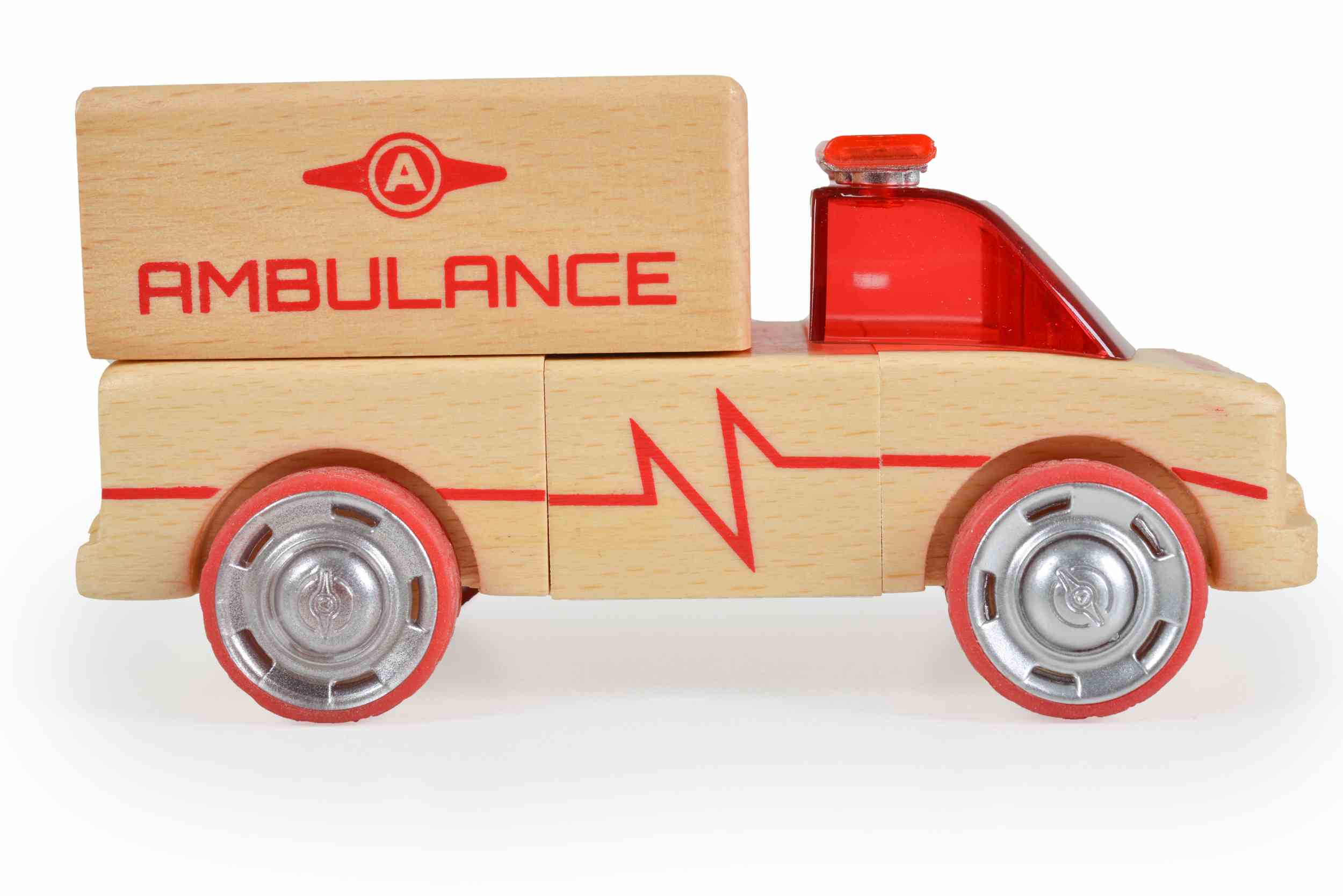 Комплектът дървени коли Automoblox Mini 3-Pack rescue vehicles 53106 съдържа три различни спасителни превозни средства, които са изработени от висококачествени и безопасни материали. Всяко превозно средство е проектирано с внимание към детайлите и има реалистичен дизайн, който привлича вниманието на децата. Комплектът включва полицейска кола, пожарна кола и линейка, които могат да се разглобяват и сглобяват, което стимулира въображението и креативността на децата.