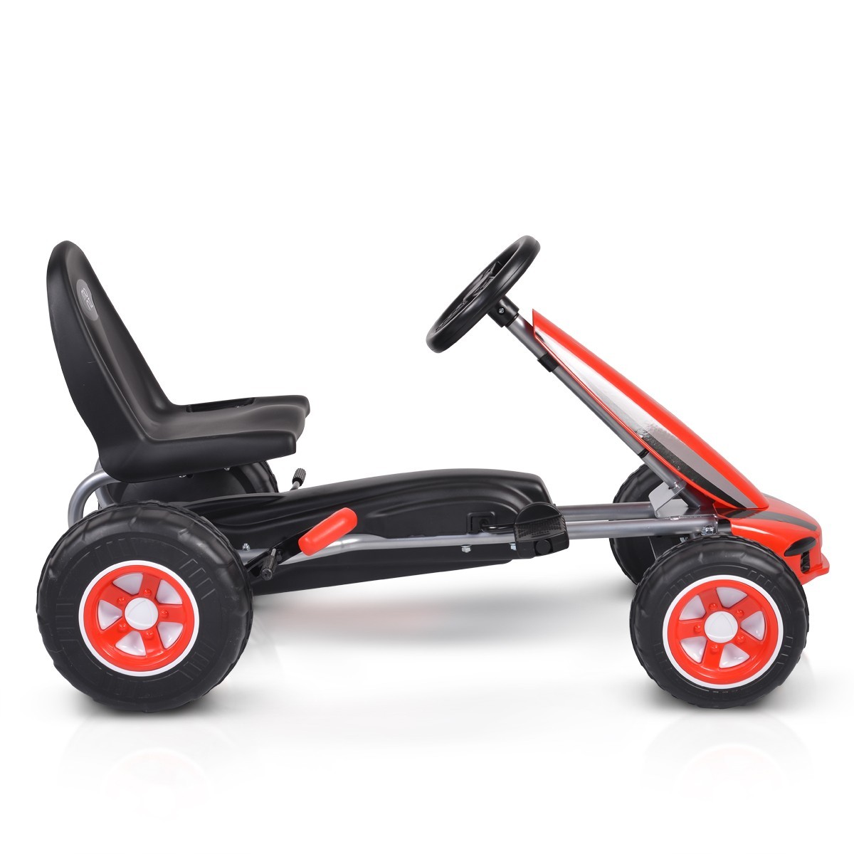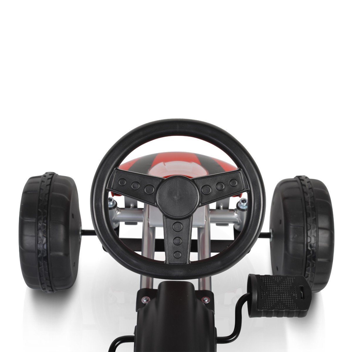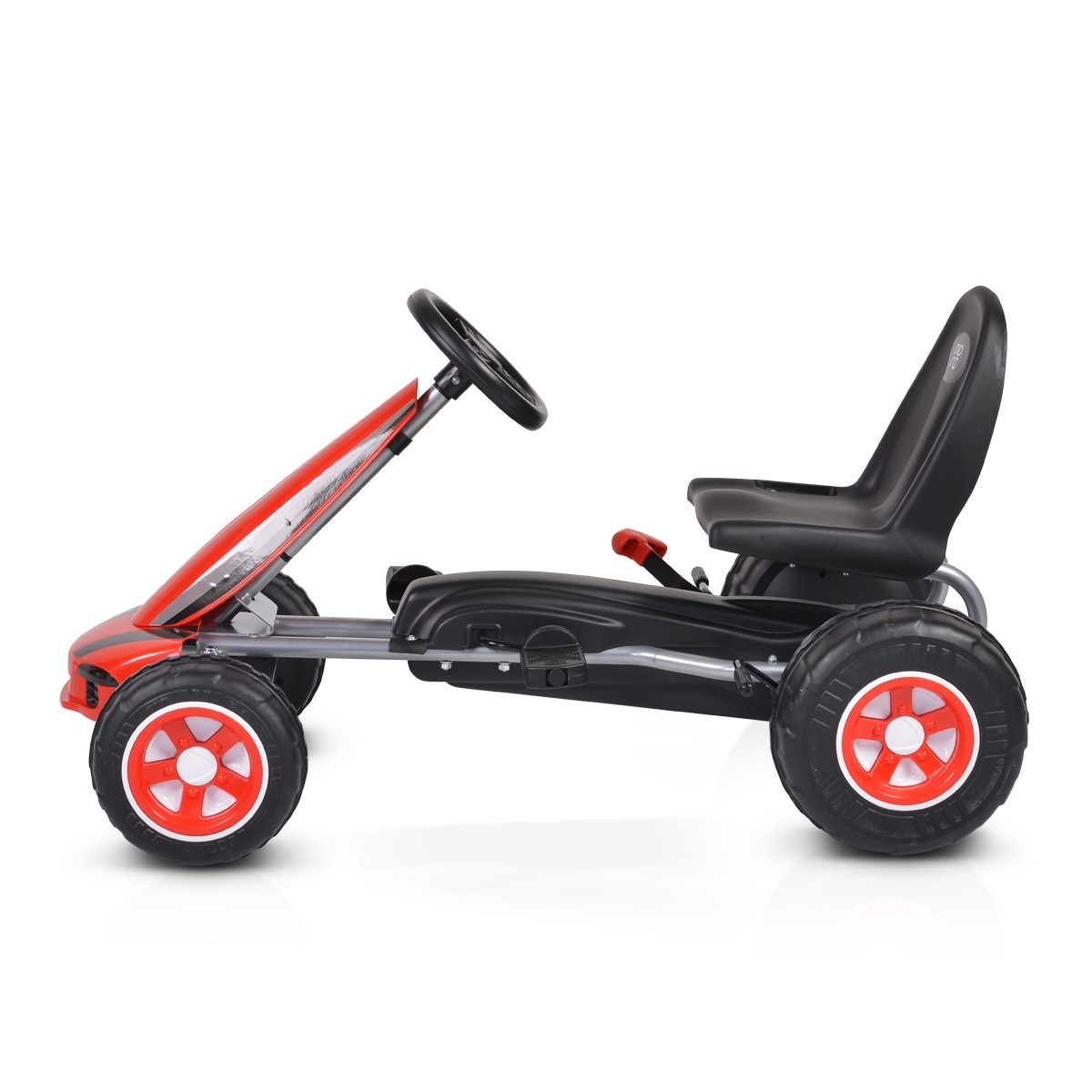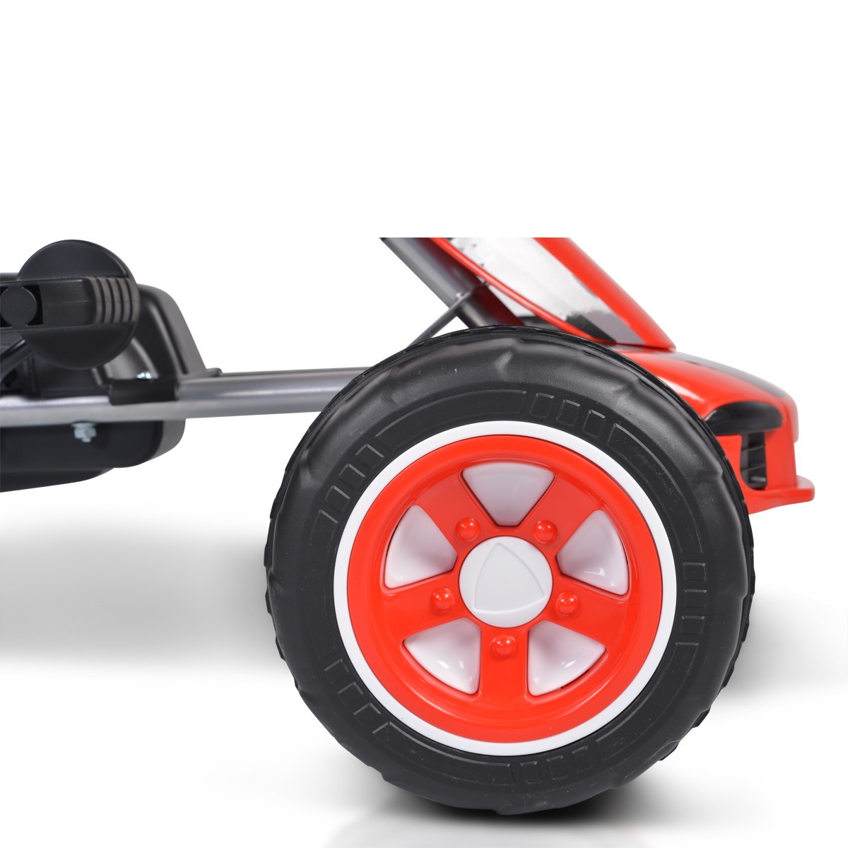 Качество и Издръжливост: Изработена от висококачествени материали, картинг колата е устойчива и издръжлива, гарантирайки дълги часове на игра и забавление. Пластмасовите гуми са проектирани да издържат на различни терени, без да компрометират стабилността на возилото.