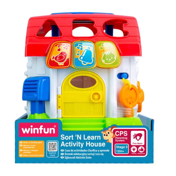 Активен център WINFUN Къща сортер 772 е чудесна играчка, предназначена за деца на възраст над 12 месеца. Той е създаден да стимулира логическото мислене, въображението и фината моторика на малките деца.