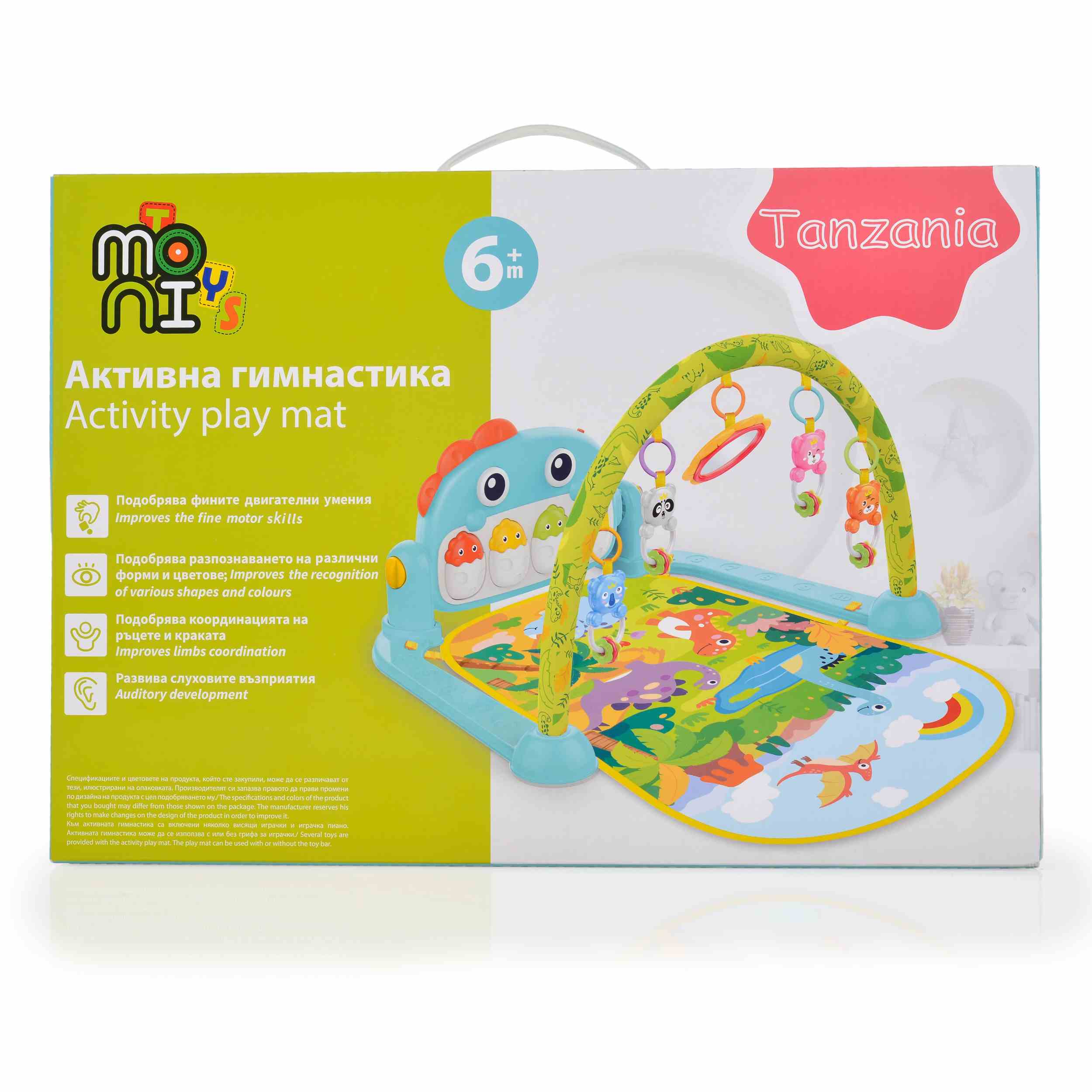 Три позиции за игра: Активната гимнастика предлага три различни позиции за игра – по гръб, по коремче и в седнало положение, което позволява разнообразие и адаптация към нуждите на бебето.