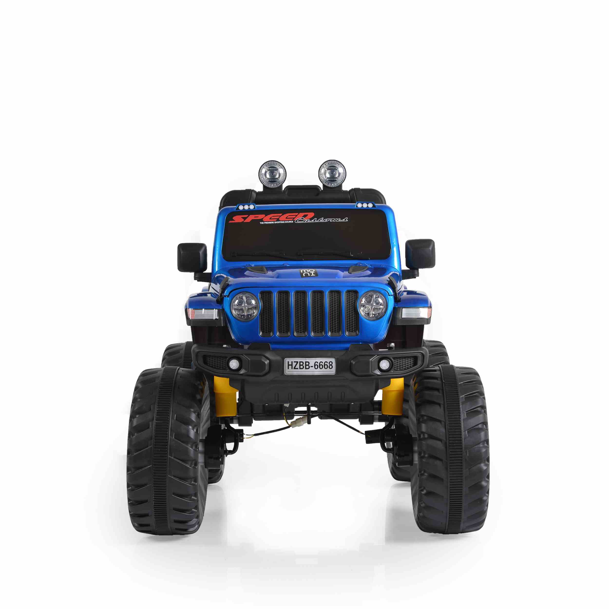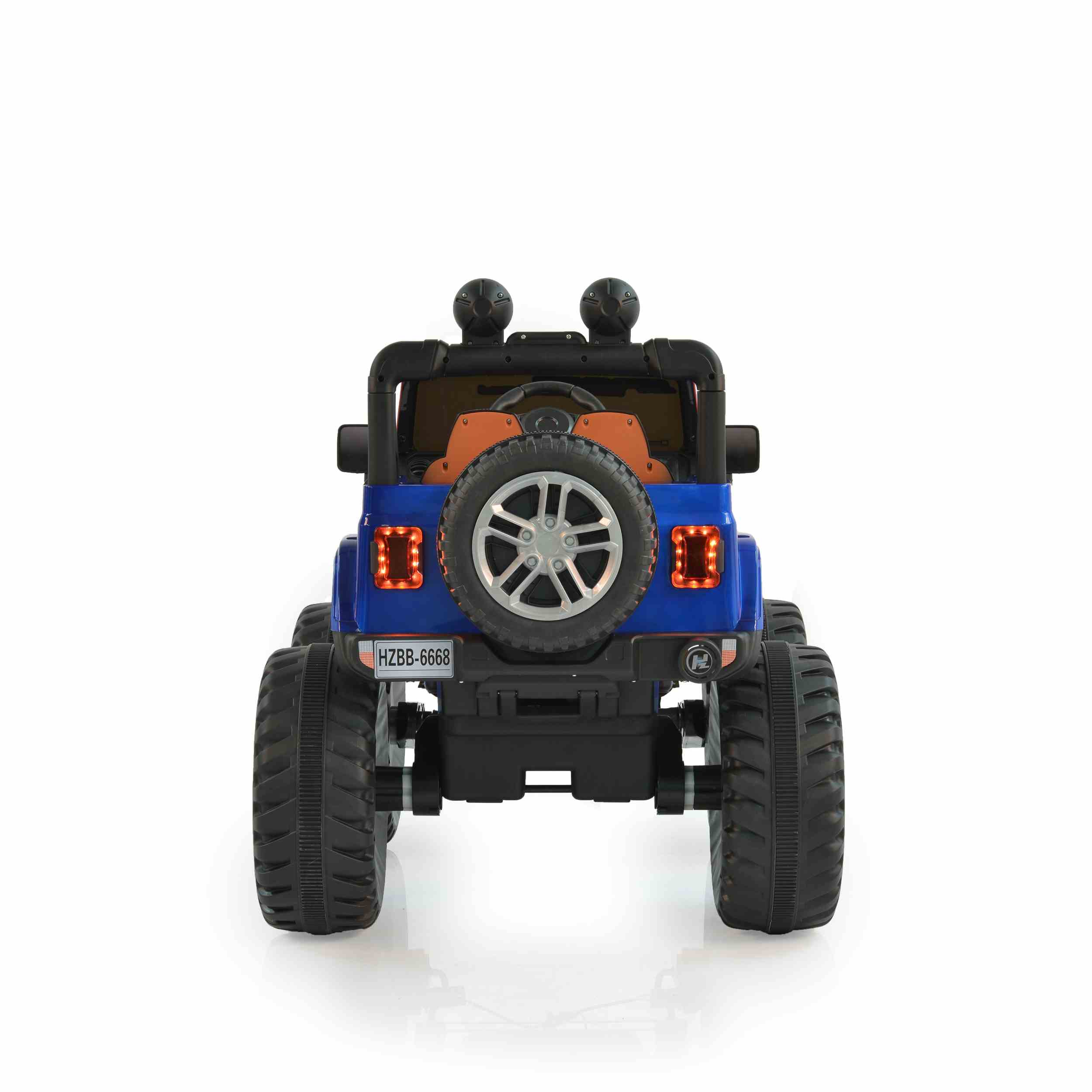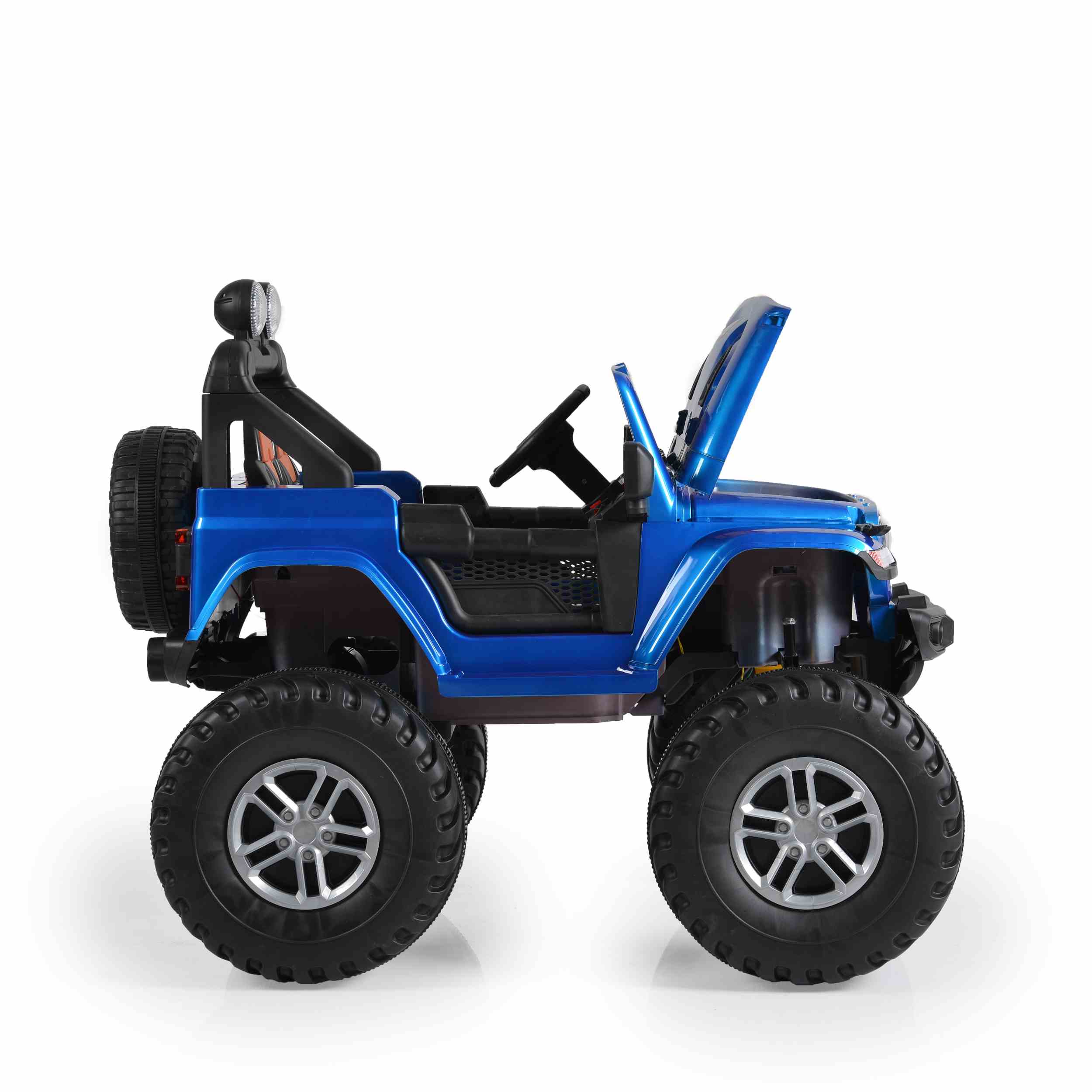 Джипът разполага с 4 мотора, предни и задни светлини, отварящи се врати и бутон ON/OFF.