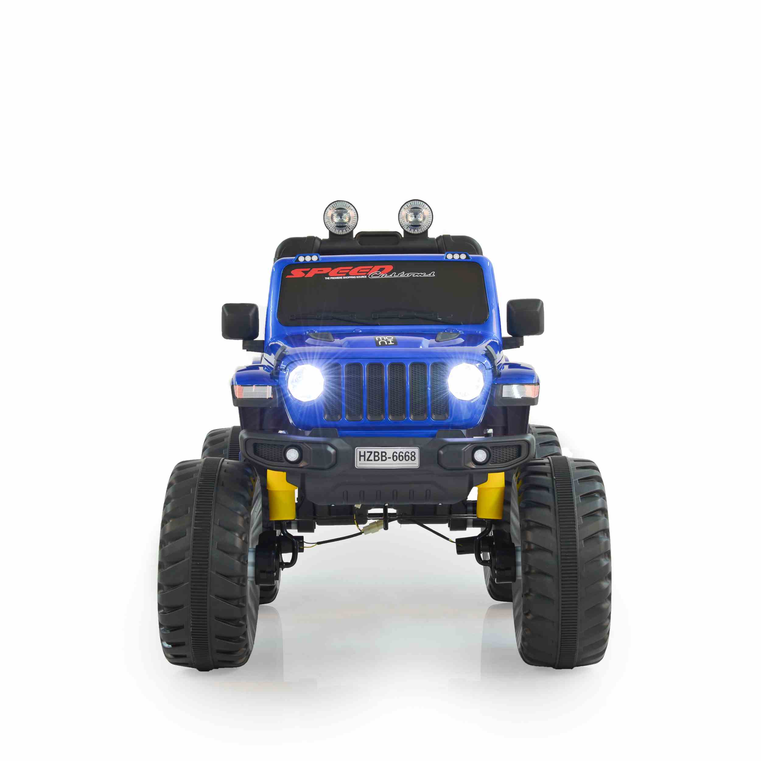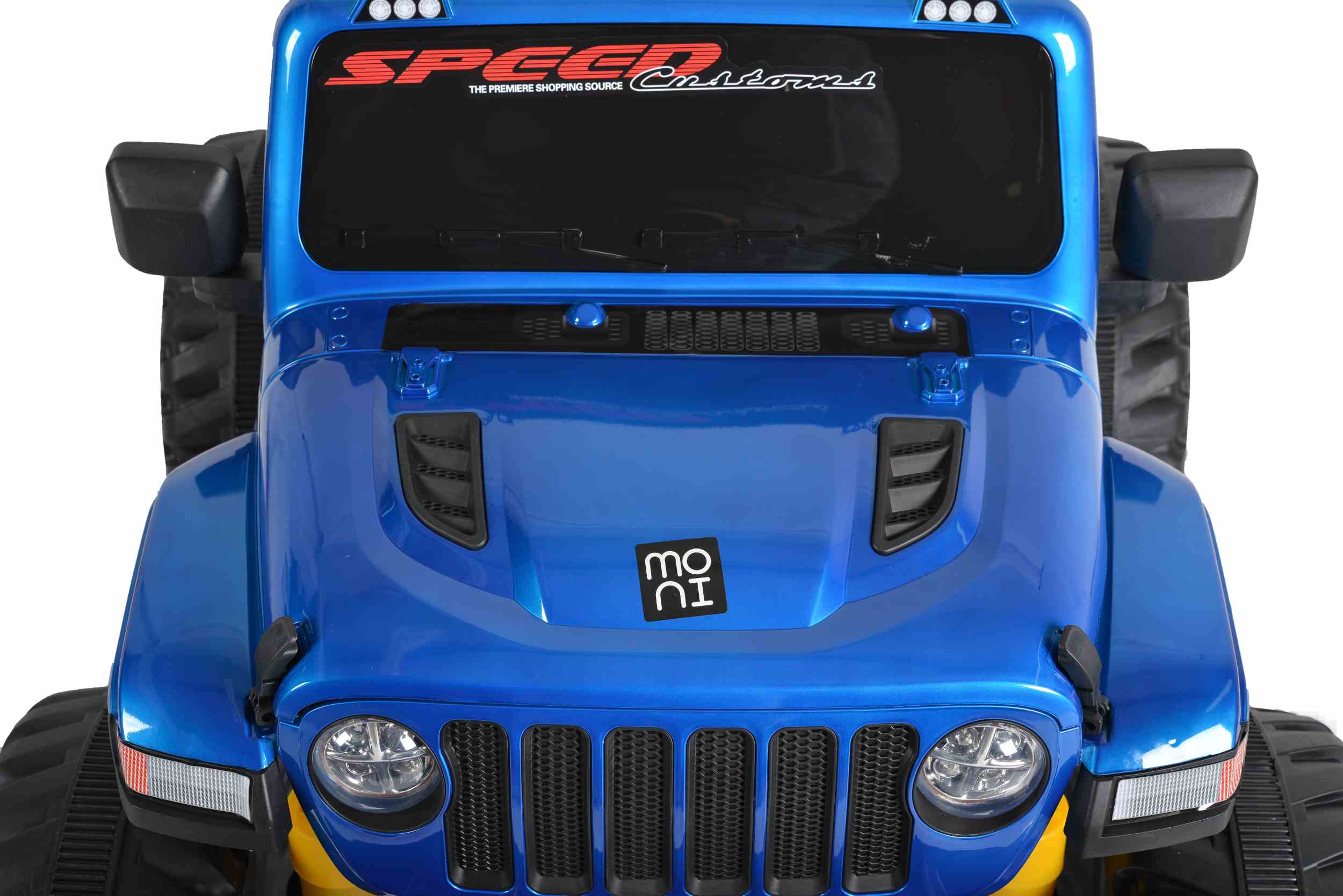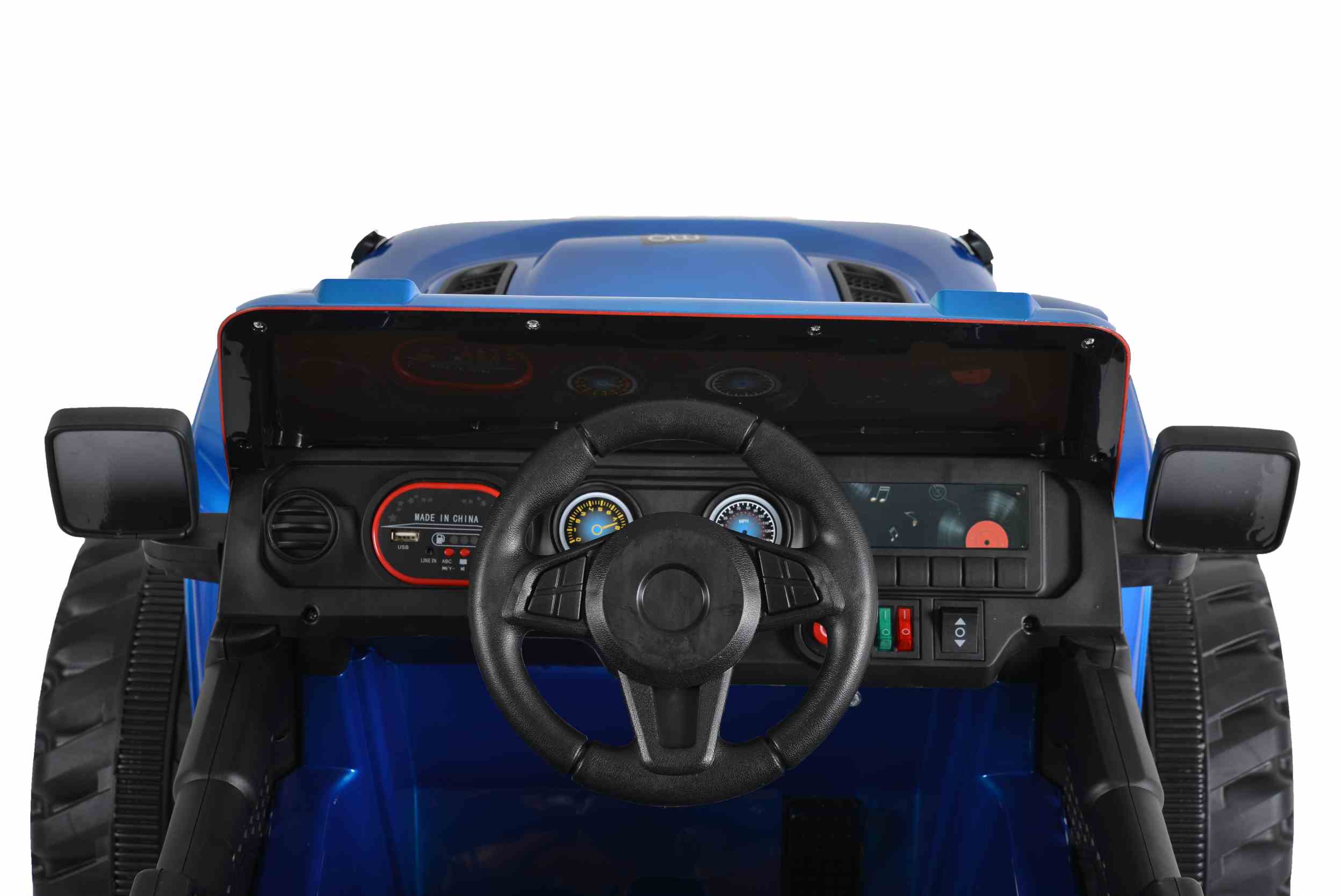 Джипът разполага с 4 мотора, предни и задни светлини, отварящи се врати и бутон ON/OFF.