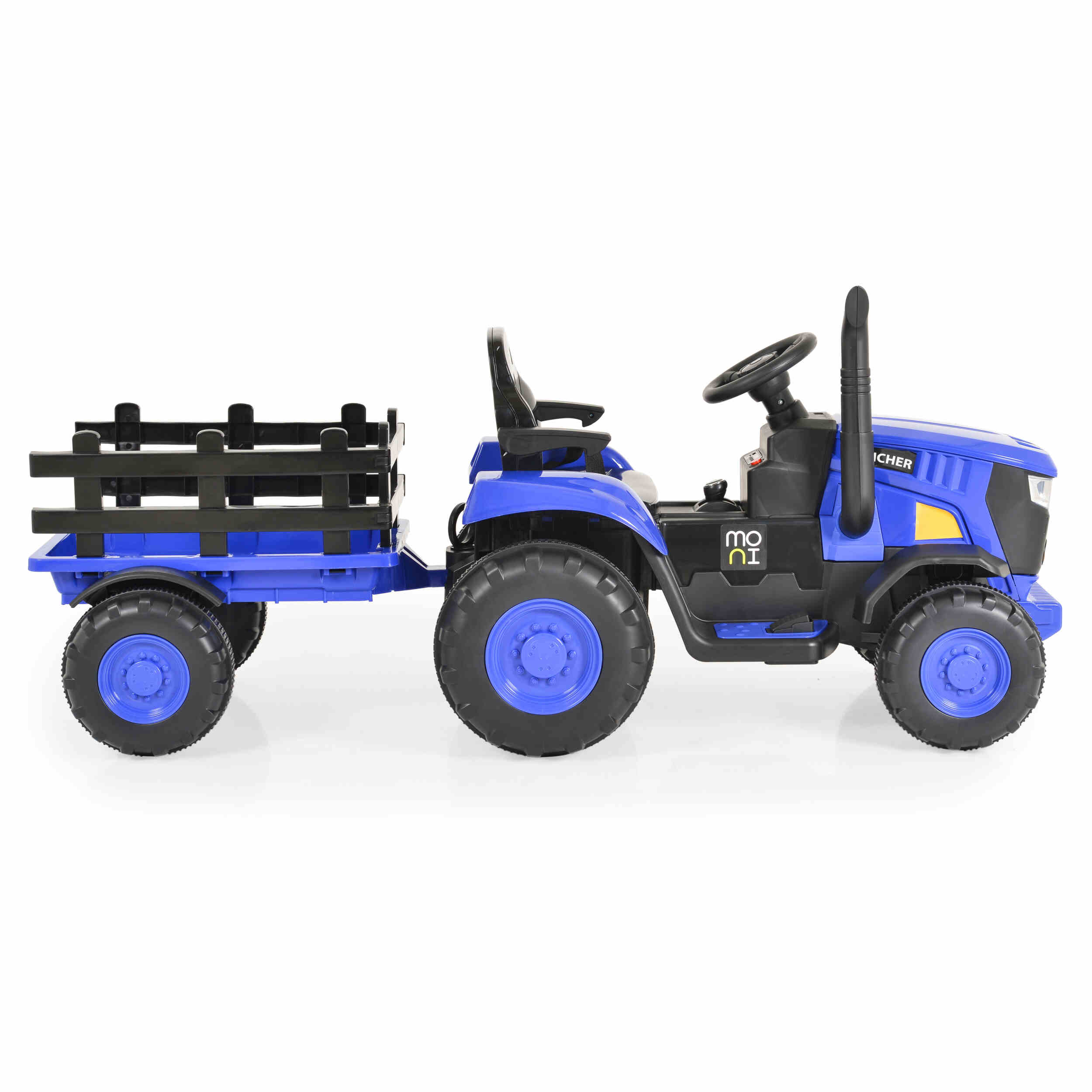 Акумулаторен трактор Rancher син от Moni е идеален избор за малките фермери и за родителите, които искат да осигурят забавление и безопасност за своите деца. Този акумулаторен трактор е създаден с цел да предостави максимално удобство и радост по време на игра, като същевременно осигурява защита и хигиена.