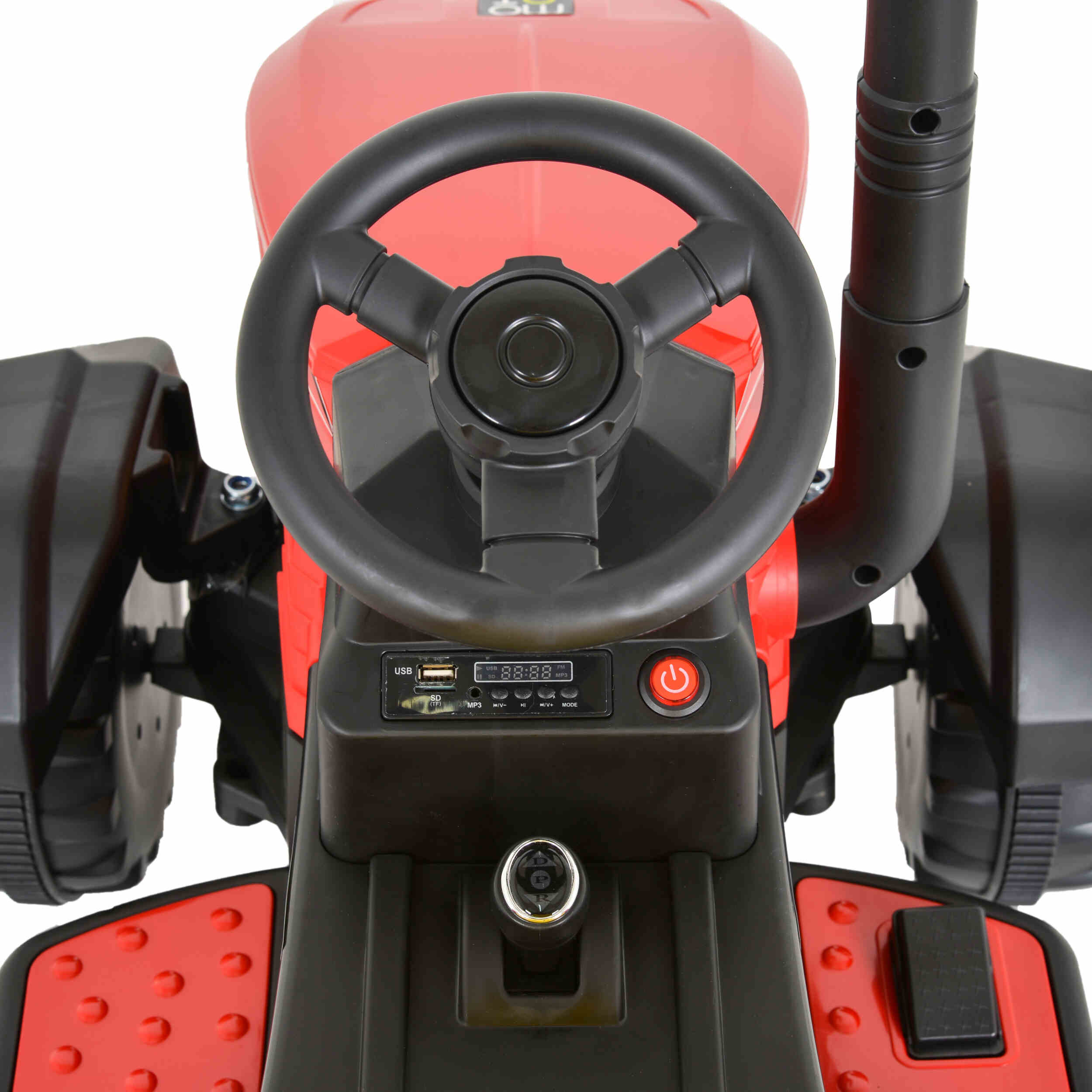 Акумулаторен трактор Rancher червен от Moni е идеален избор за малките фермери и за родителите, които искат да осигурят забавление и безопасност за своите деца. Този акумулаторен трактор е създаден с цел да предостави максимално удобство и радост по време на игра, като същевременно осигурява защита и хигиена.