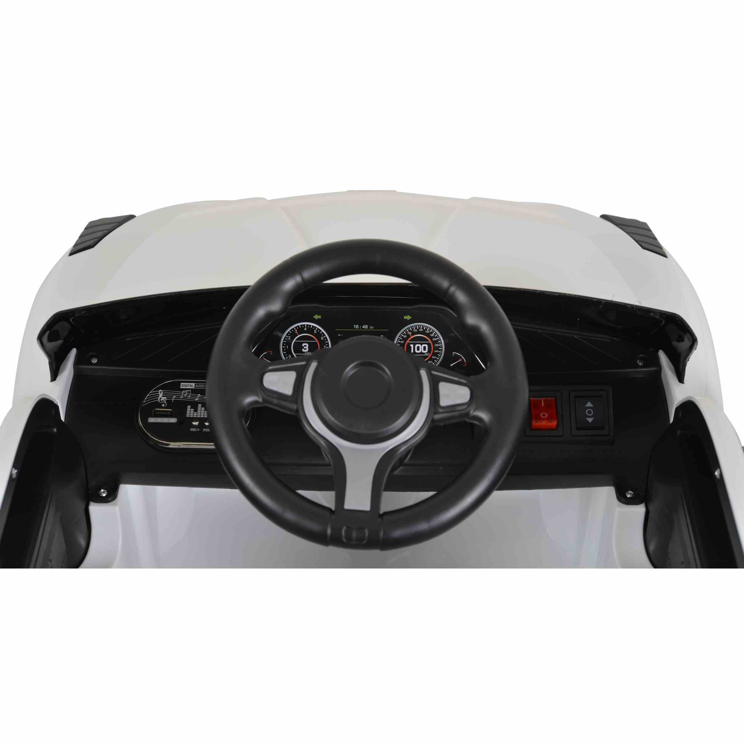 Музикални функции: Музикален плейър с USB, MP3 извод и Bluetooth за любимите песни по време на каране на тази акумулаторна кола.