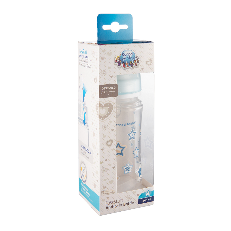 Антиколик шише Newborn Baby 240мл синьо с широко гърло Easy Start е създадено с мисъл за комфорта и безопасността на вашето бебе. Това бебешко шише предлага иновативни функции, които улесняват храненето и намаляват риска от колики, като същевременно е стилно и практично.