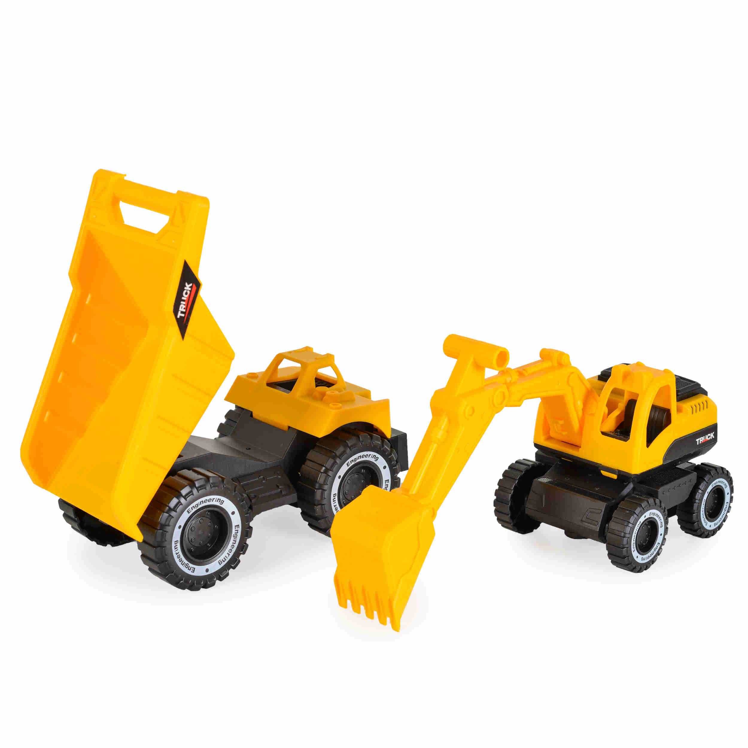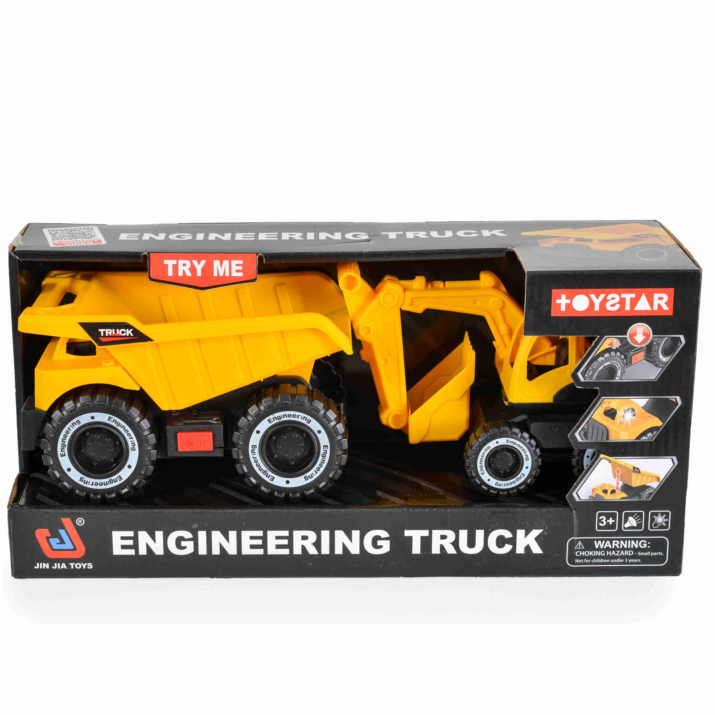 Тази играчка включва багер и самосвал, които са оборудвани със звукови и светлинни ефекти, за да направят играта още по-забавна и вълнуваща.
