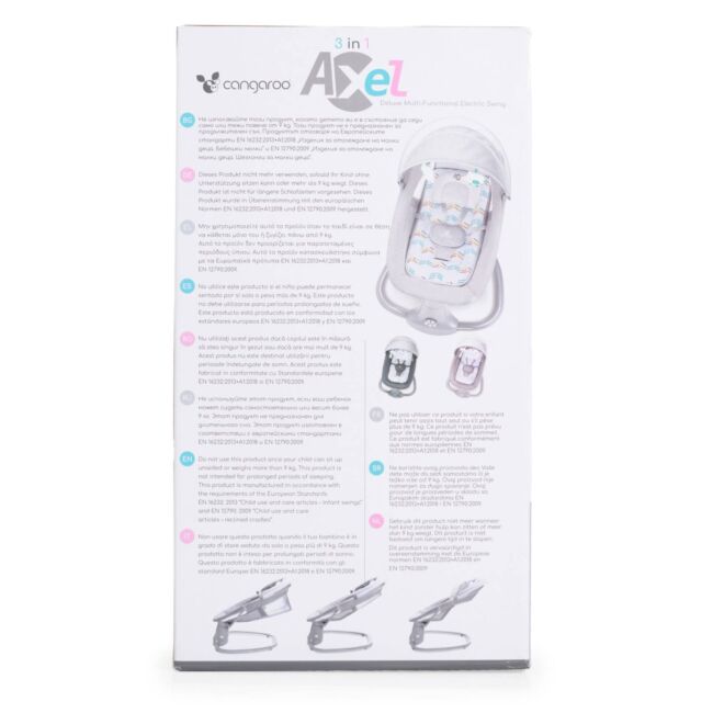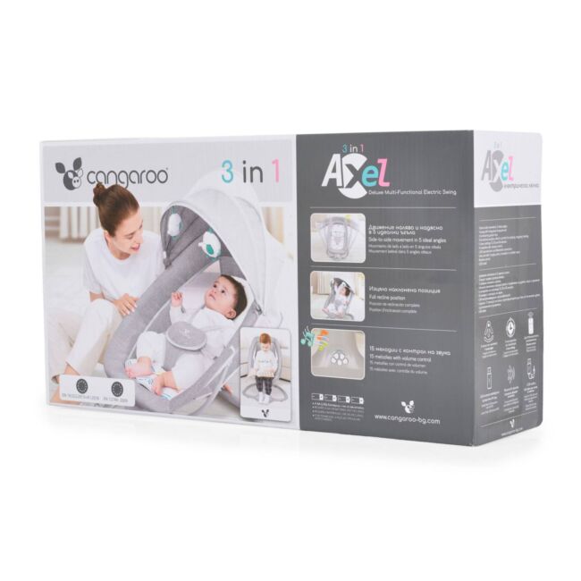 Тази електрическа люлка е идеална за родители, които търсят устройство, което да осигури безопасност и забавление за техните деца, като същевременно предлага различни функции за успокояване и стимулиране на бебето. Със своята многофункционалност и лесна за употреба конструкция, Cangaroo – Axel е чудесен избор за съвременните семейства.