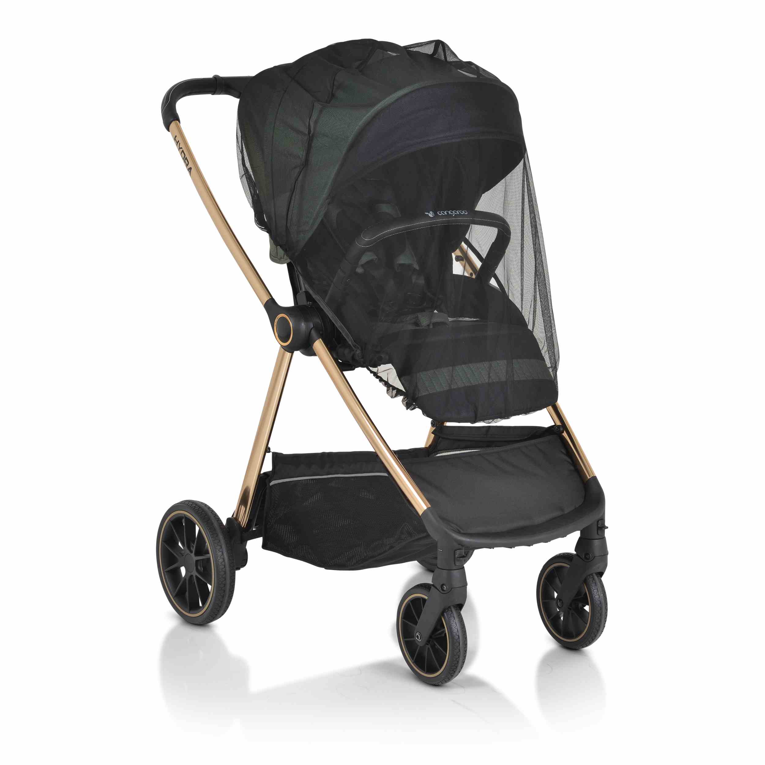 Дъждобран и Комарник: За защита от дъжда и насекомите, тази бебешка количка е оборудвана с дъждобран и комарник.