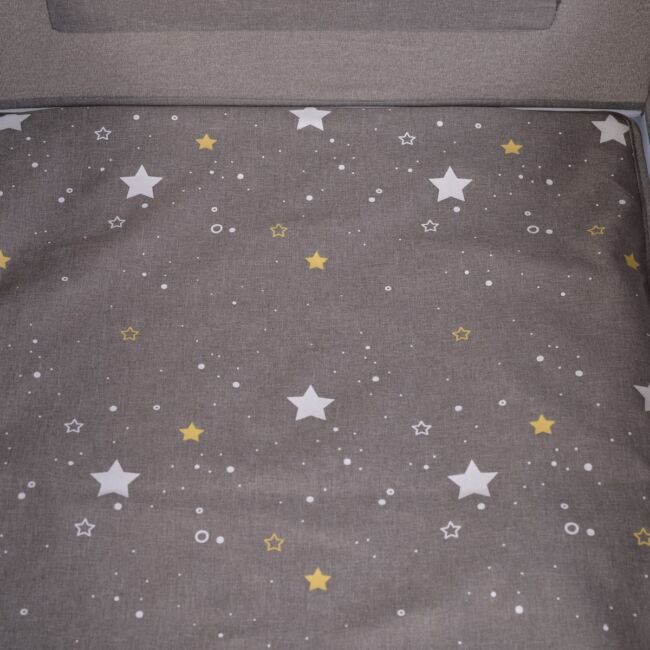Бебешка кошара сива Once upon a time 2 е създадена да бъде оазис на спокойствие и уют за вашето новородено бебе. Съчетавайки функционалността на модерната бебешка кошара с очарованието на приказните мотиви, този продукт е идеален за родители, които търсят най-доброто за своите малки съкровища.