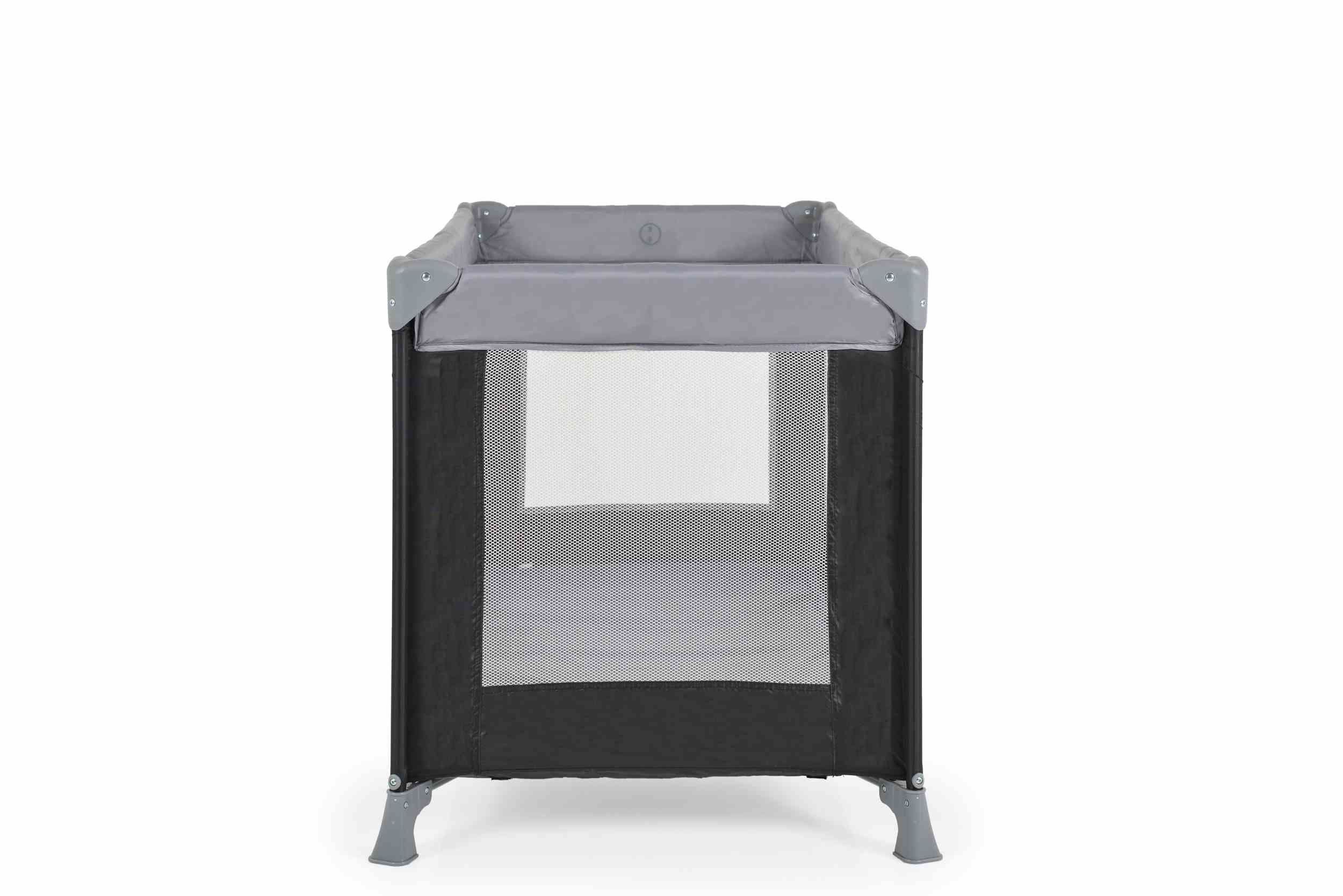 Мрежести страни: И четирите страни на кошарата са с мрежа, която осигурява добра видимост на родителя и вентилация за детето.