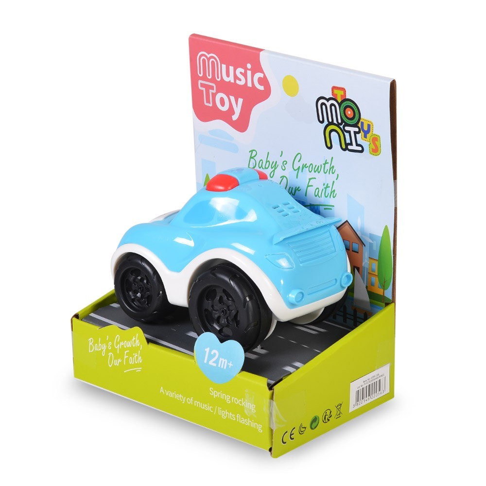 Функционалност: Играчката разполага с инерционен механизъм, който позволява на колата да се движи напред след леко побутване. Музикалните бутони активират различни мелодии и звуци, които стимулират слуховото възприятие на децата.
