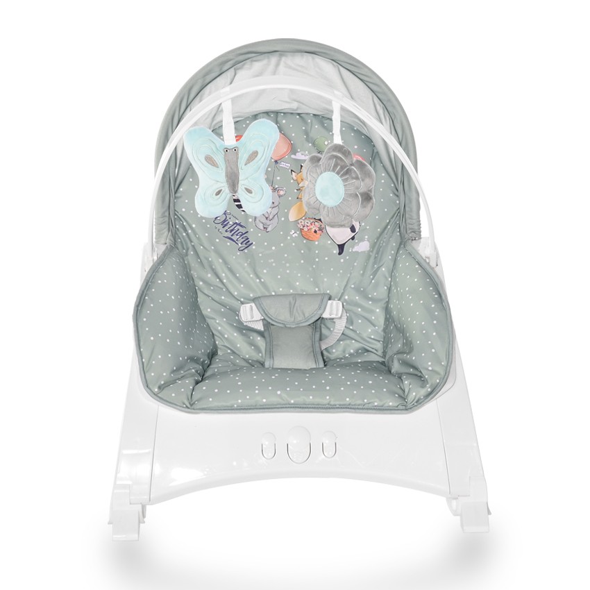 Бебешки шезлонг ENJOY зелен е създаден, за да предложи комфорт и забавление за вашето бебе, като същевременно осигурява спокойствие и удобство за родителите. Този шезлонг е идеален за деца от раждането до достигане на тегло от 18 кг.