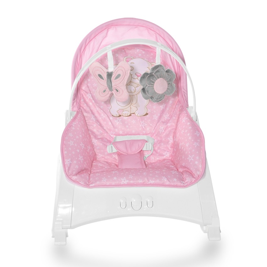 Бебешки шезлонг ENJOY розов е създаден, за да предложи комфорт и забавление за вашето бебе, като същевременно осигурява спокойствие и удобство за родителите. Този шезлонг е идеален за деца от раждането до достигане на тегло от 18 кг.