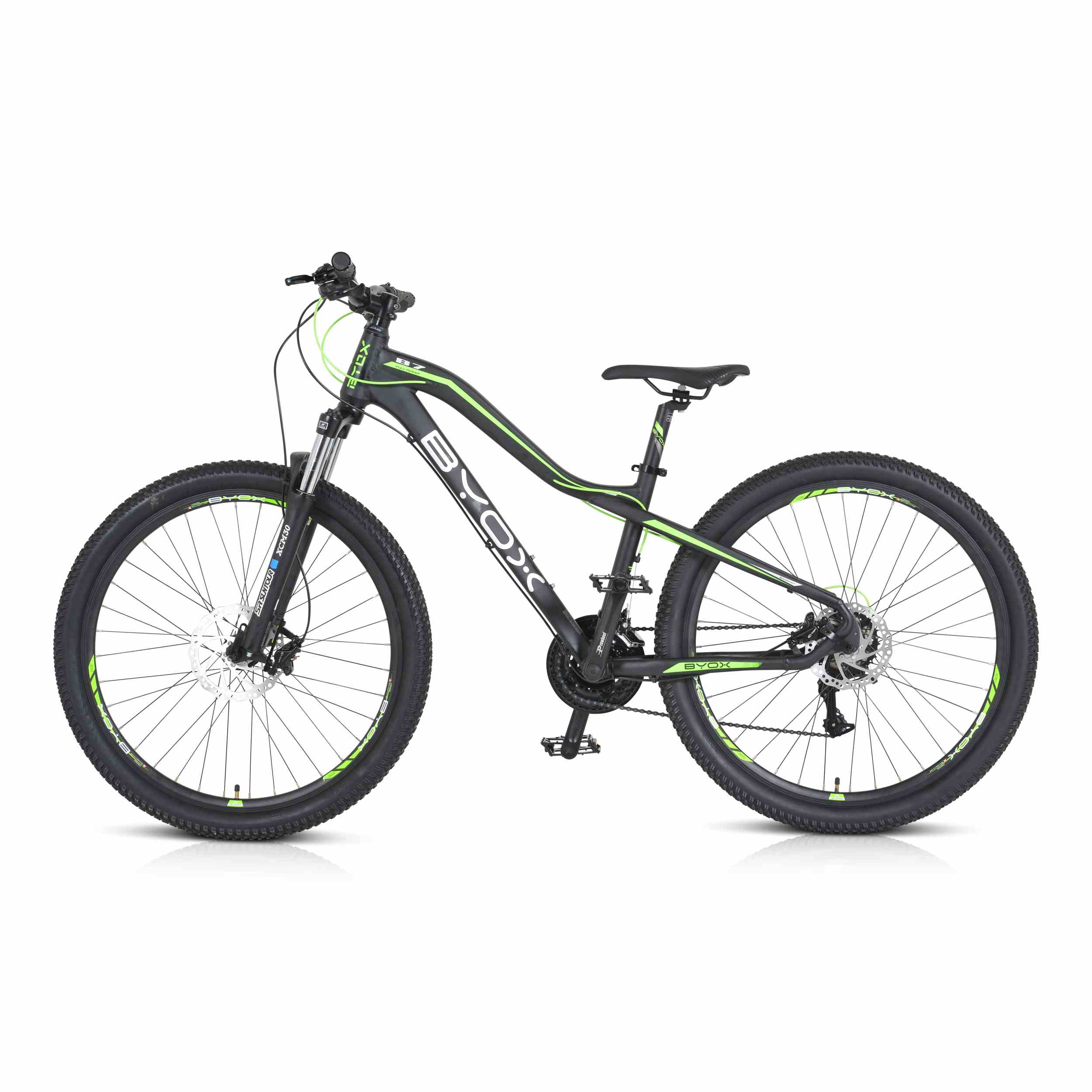 Вилка: Suntour xcm с регулируема окачваща вилка и 100 мм ход, осигуряваща гладко преминаване на този велосипед през всички предизвикателства на пътя.