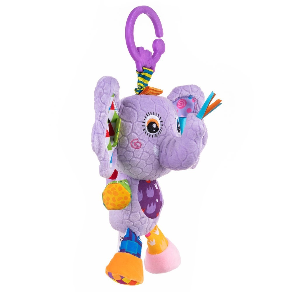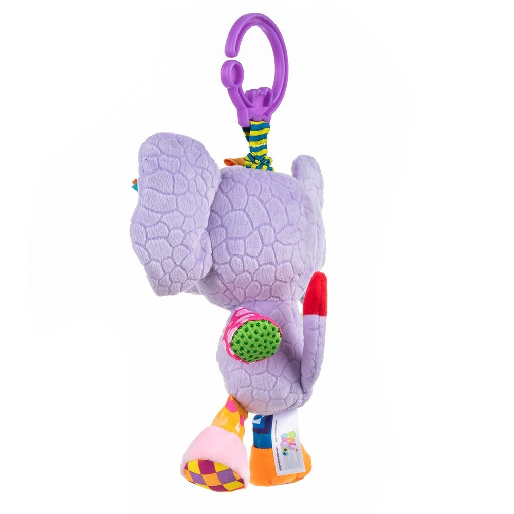 Шумолещи уши: Слончето има шумолещи уши, които издават звуци при докосване, стимулирайки слуховите сетива на бебето.
