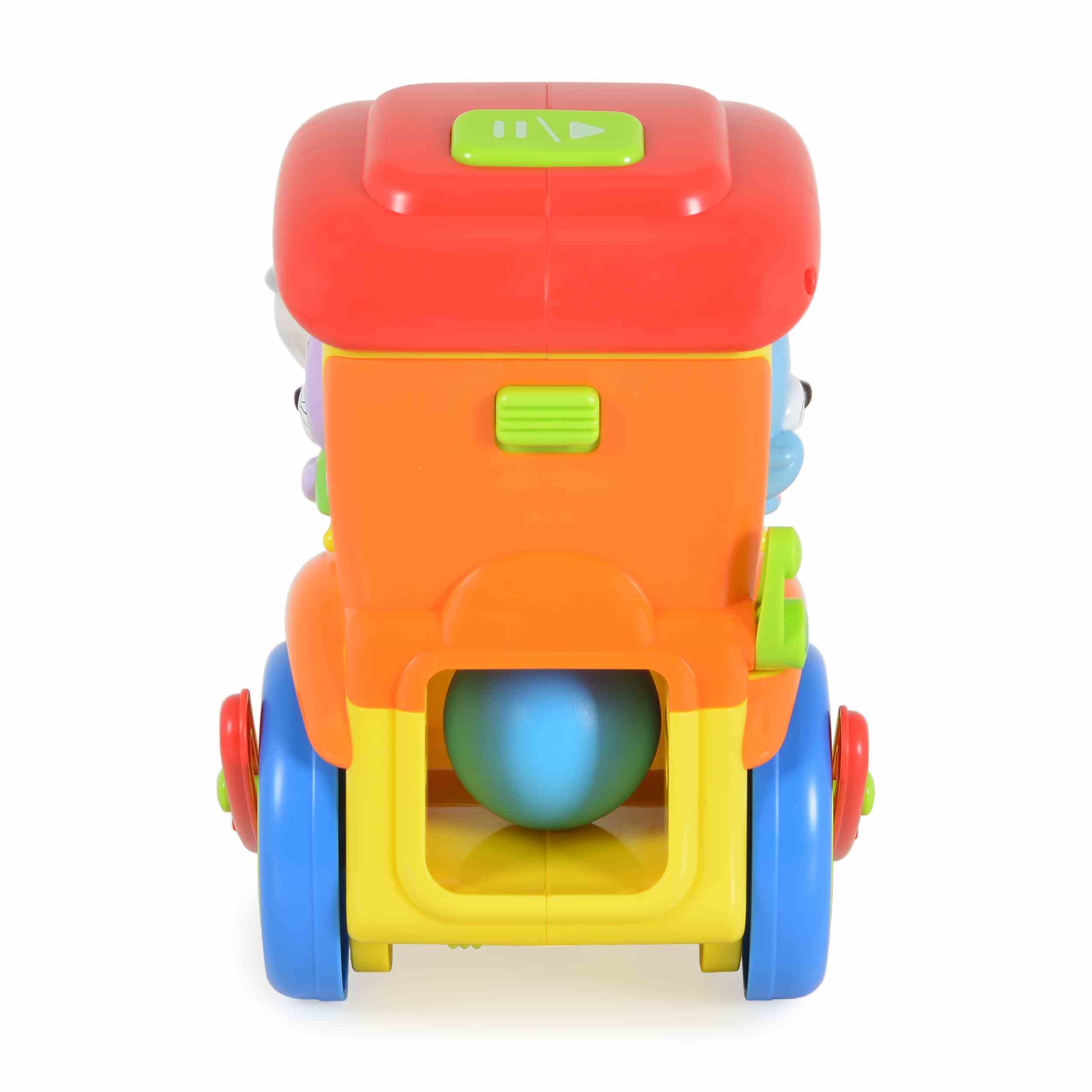 Музикални и светлинни ефекти: Играчката предлага различни музикални мелодии и светлинни ефекти, които стимулират слуховите и зрителните възприятия на детето.