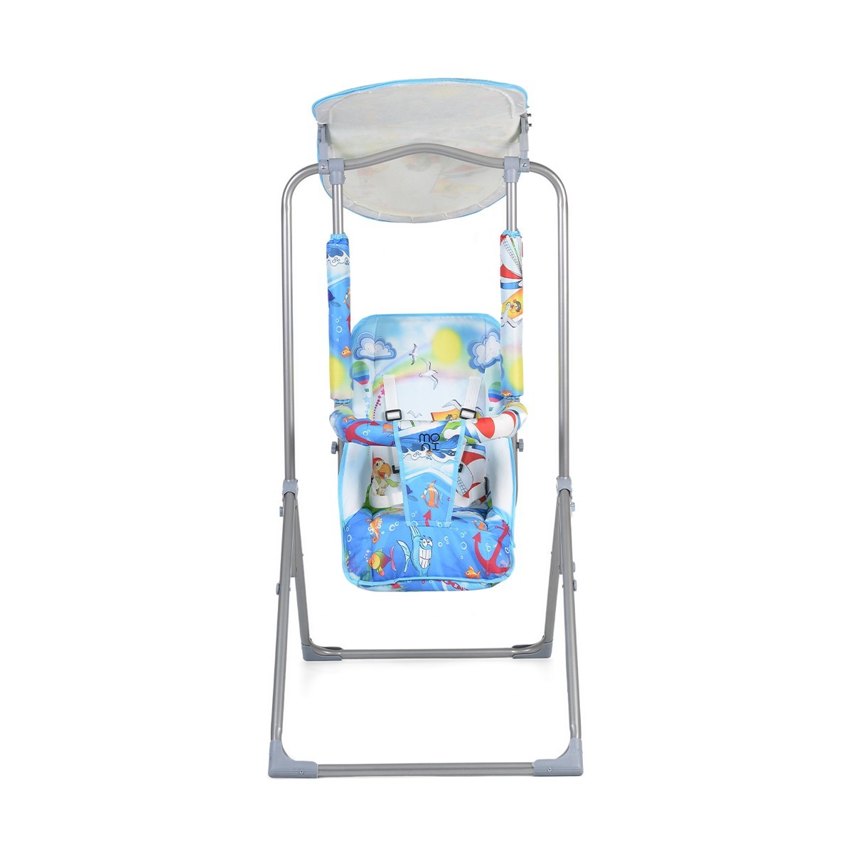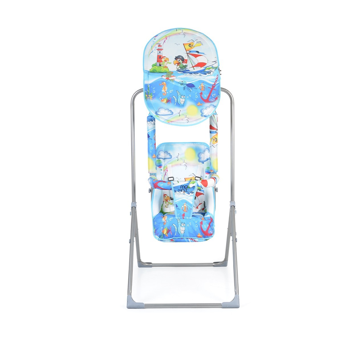 Безопасност: Предпазни колани с пет точки на захващане, които гарантират безопасността на детето по време на люлеене.