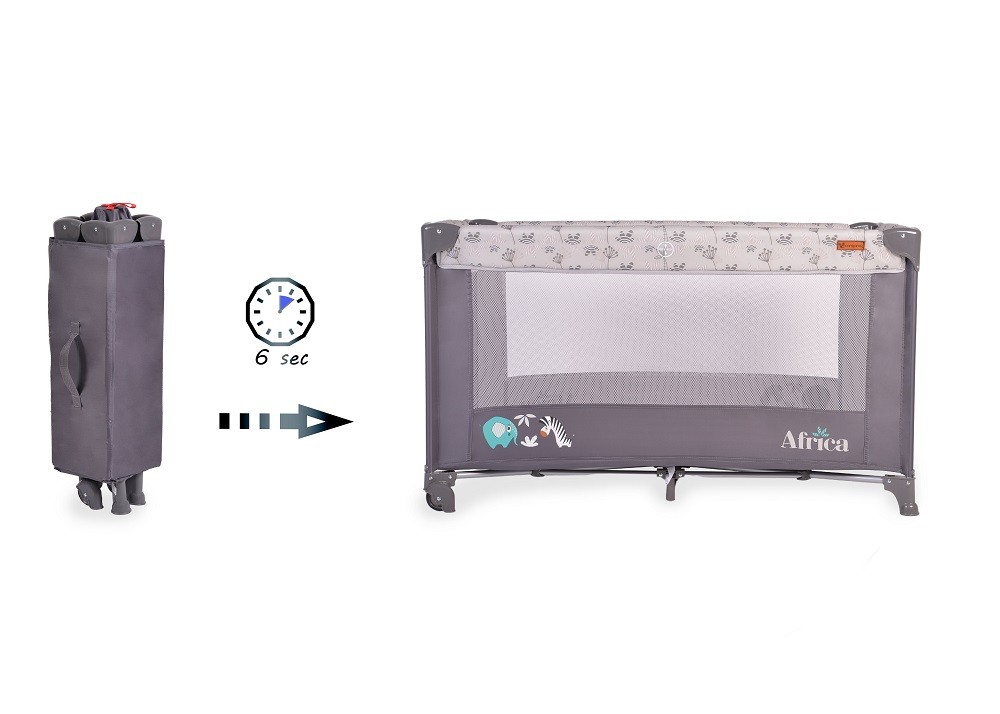 Детска кошара Africa сива е създадена да предложи уютно и безопасно пространство за вашето бебе, като същевременно осигурява удобство и мобилност за родителите. Тази кошара е идеална за новородени и деца до тегло от 14 кг, като предлага функционалност и стил в едно.