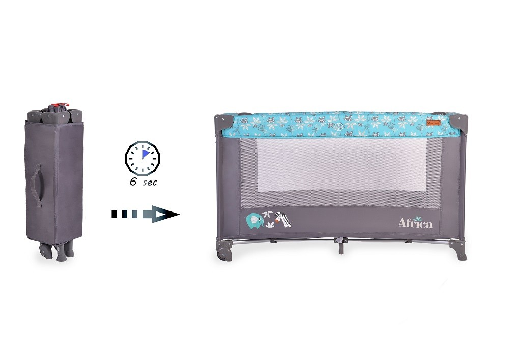 Детска кошара Africa е създадена да предложи уютно и безопасно пространство за вашето бебе, като същевременно осигурява удобство и мобилност за родителите. Тази кошара е идеална за новородени и деца до тегло от 14 кг, като предлага функционалност и стил в едно.