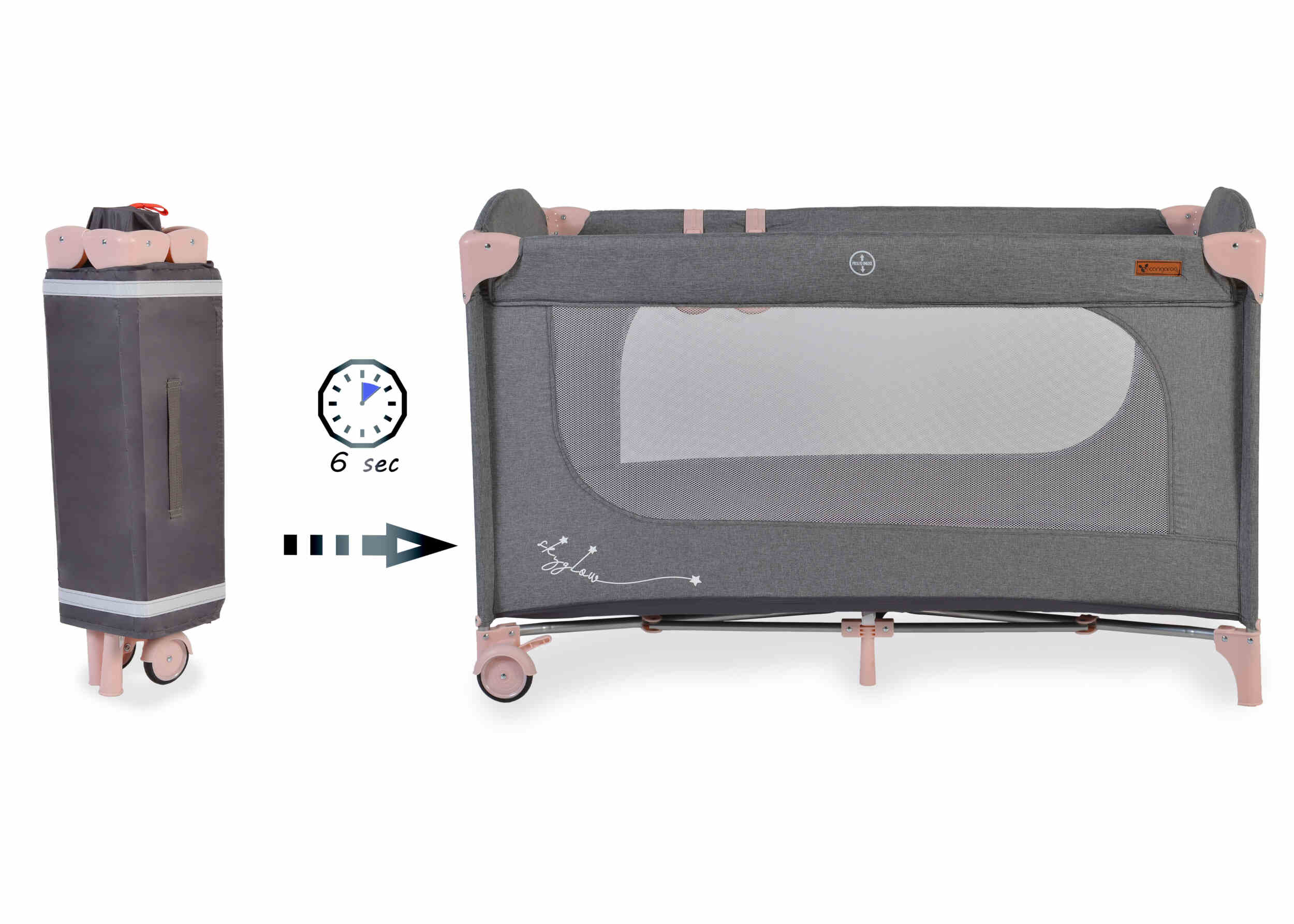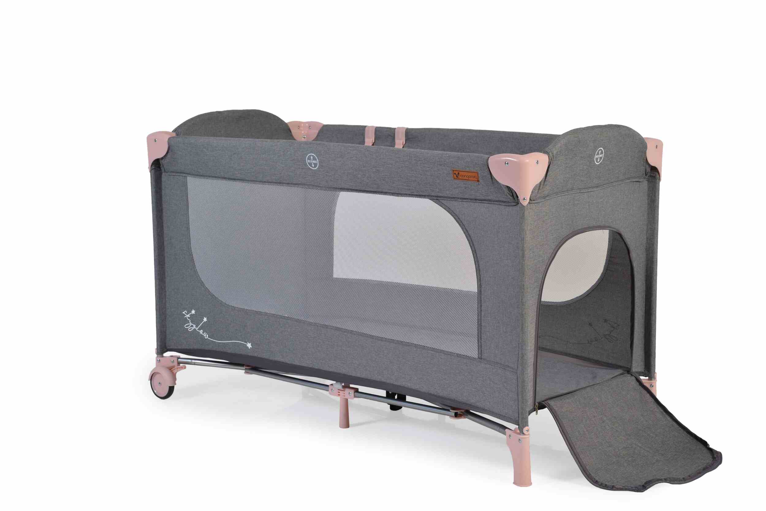 Детска кошара Skyglow 1 розов е идеална за новородени бебета и деца до 14 кг. Тя е с модерен дизайн, лесно се сгъва и разгъва, и предлага двойна защита срещу самостоятелно сгъване. В комплекта ще откриете чанта за съхранение и пренасяне.