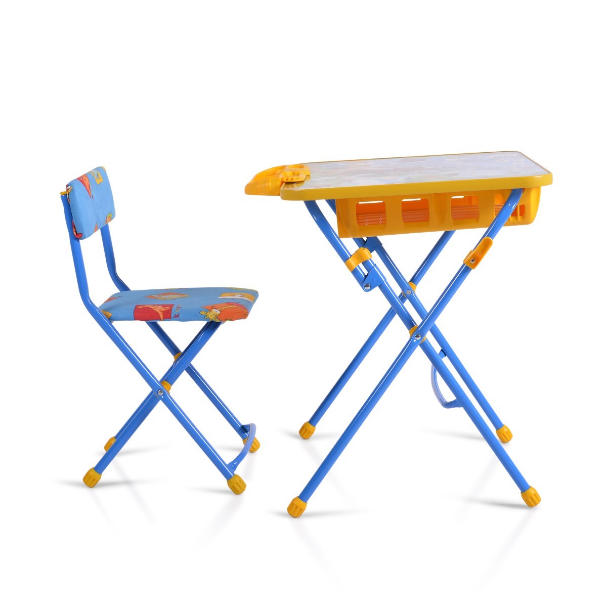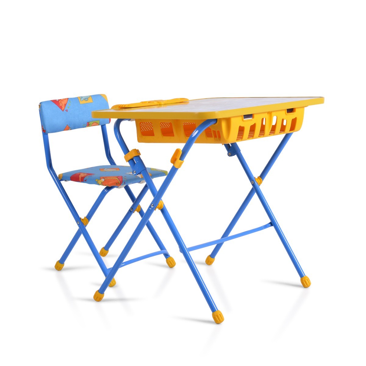 Функционалност: Масата разполага с място за съхранение на учебници и тетрадки, както и поставка за моливи, което поддържа реда и организацията.