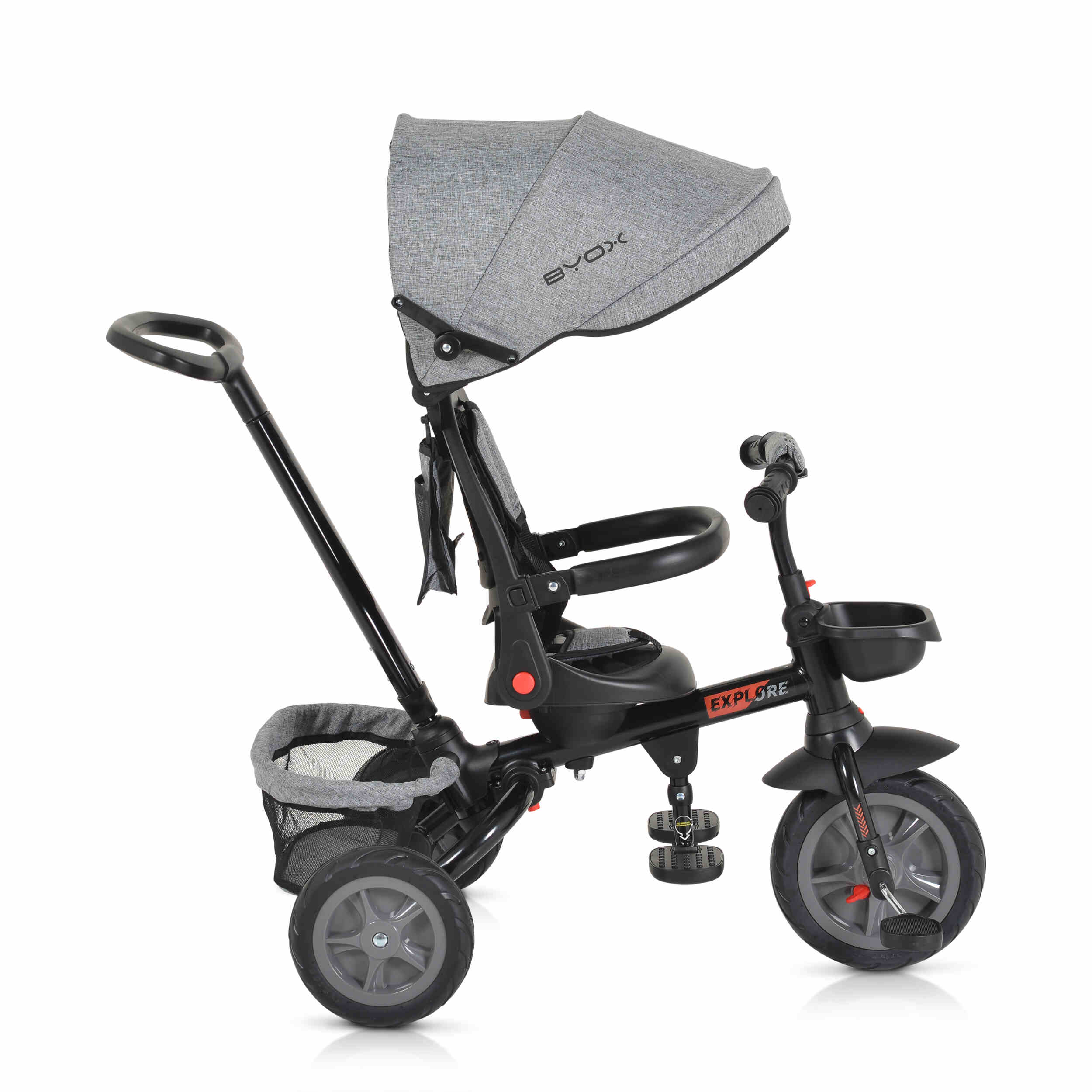Детска триколка Explore сгъваемо кормило сив е идеалното решение за родителите, които търсят функционалност, комфорт и безопасност за своето дете по време на разходки. Тази триколка за бебе съчетава стилен дизайн и иновативни функции, които улесняват ежедневието на родителите и осигуряват удобство за детето. Голям избор на детски триколки.