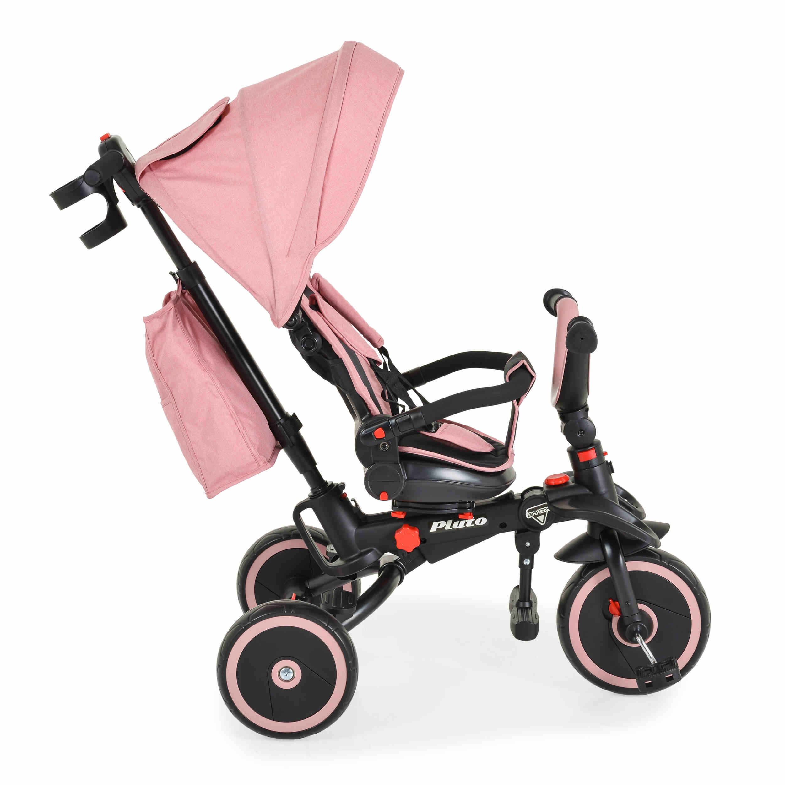 Чанта за играчки и поставка за чаши или шишета: Тази триколка разсполага с практични аксесоари за необходимите малки вещи по време на разходка.