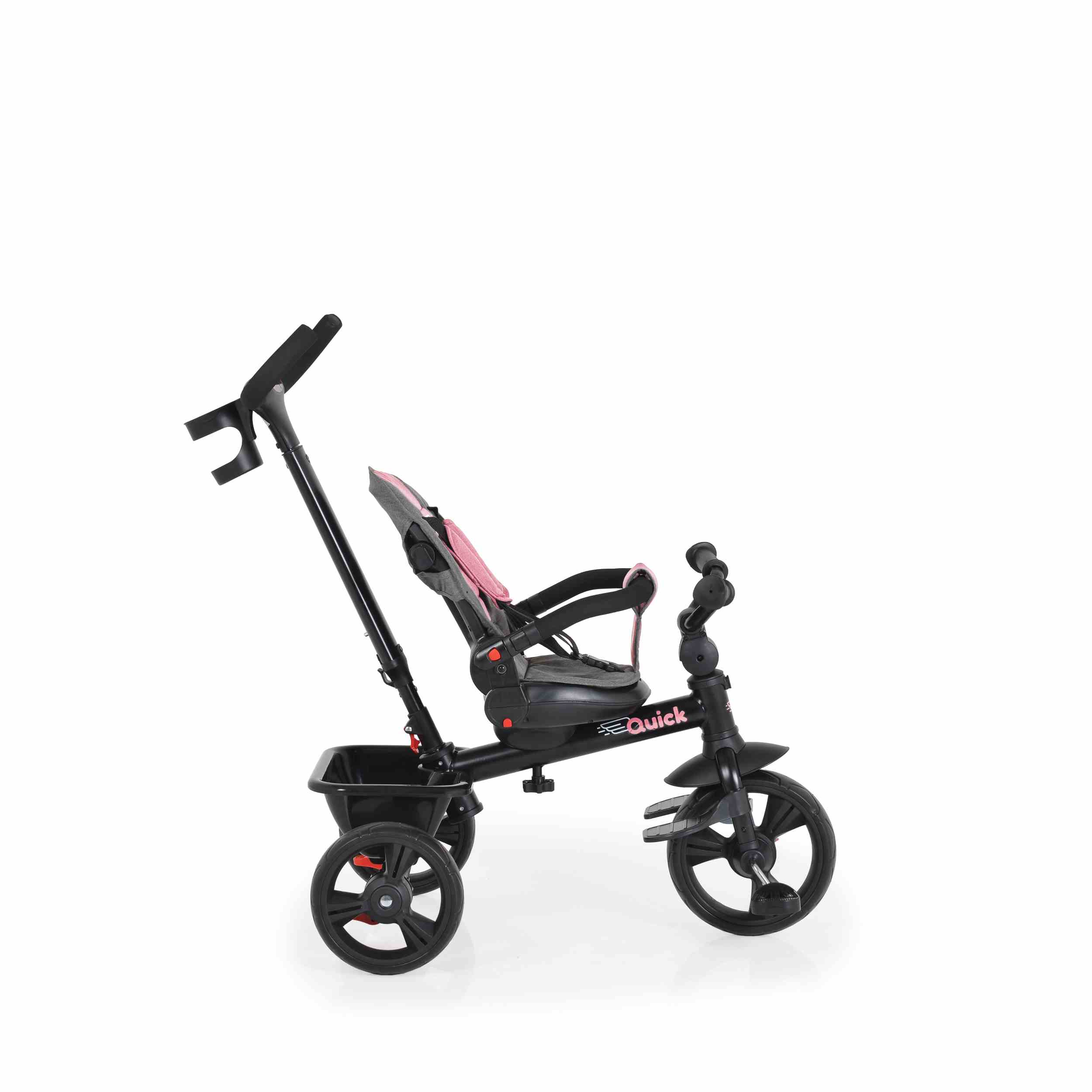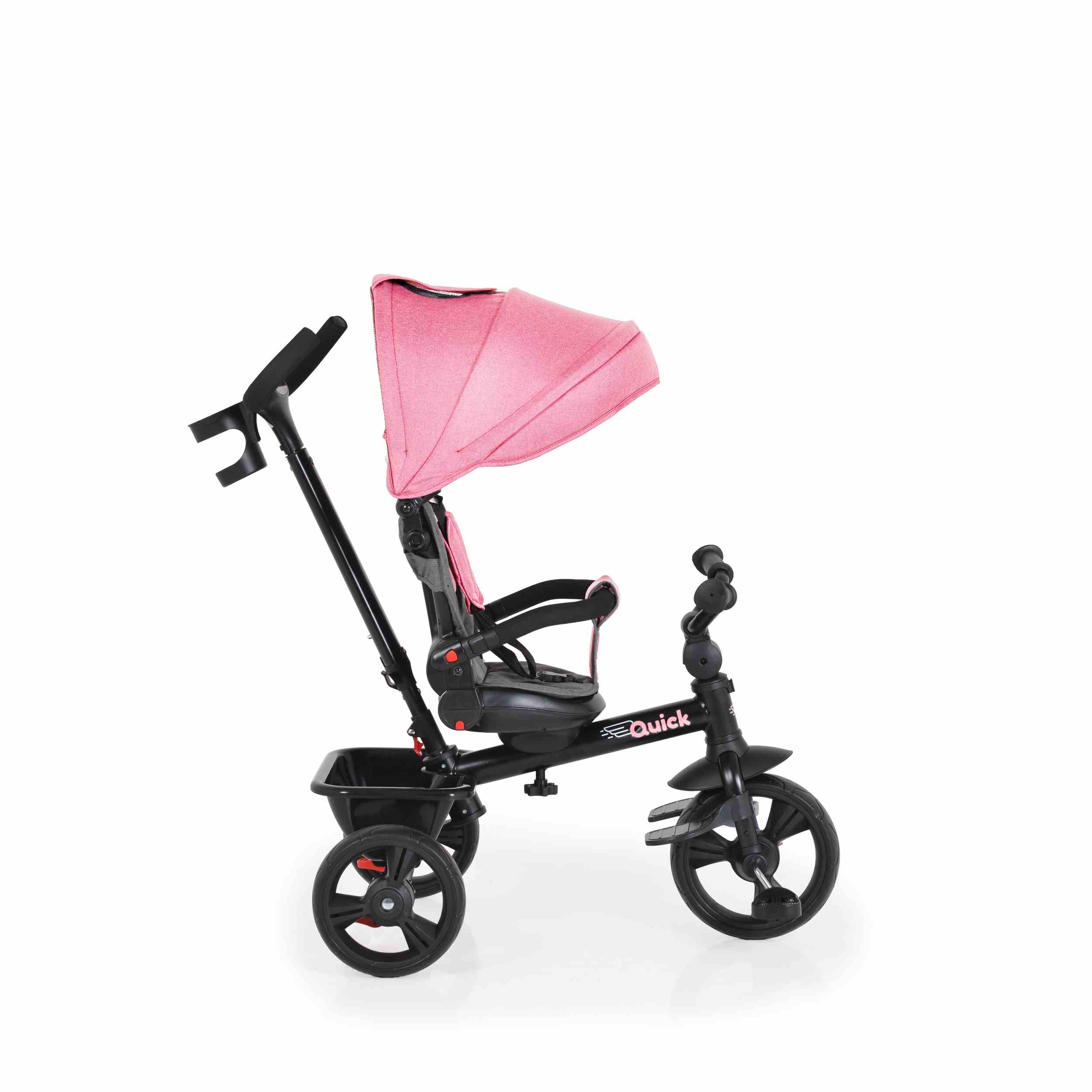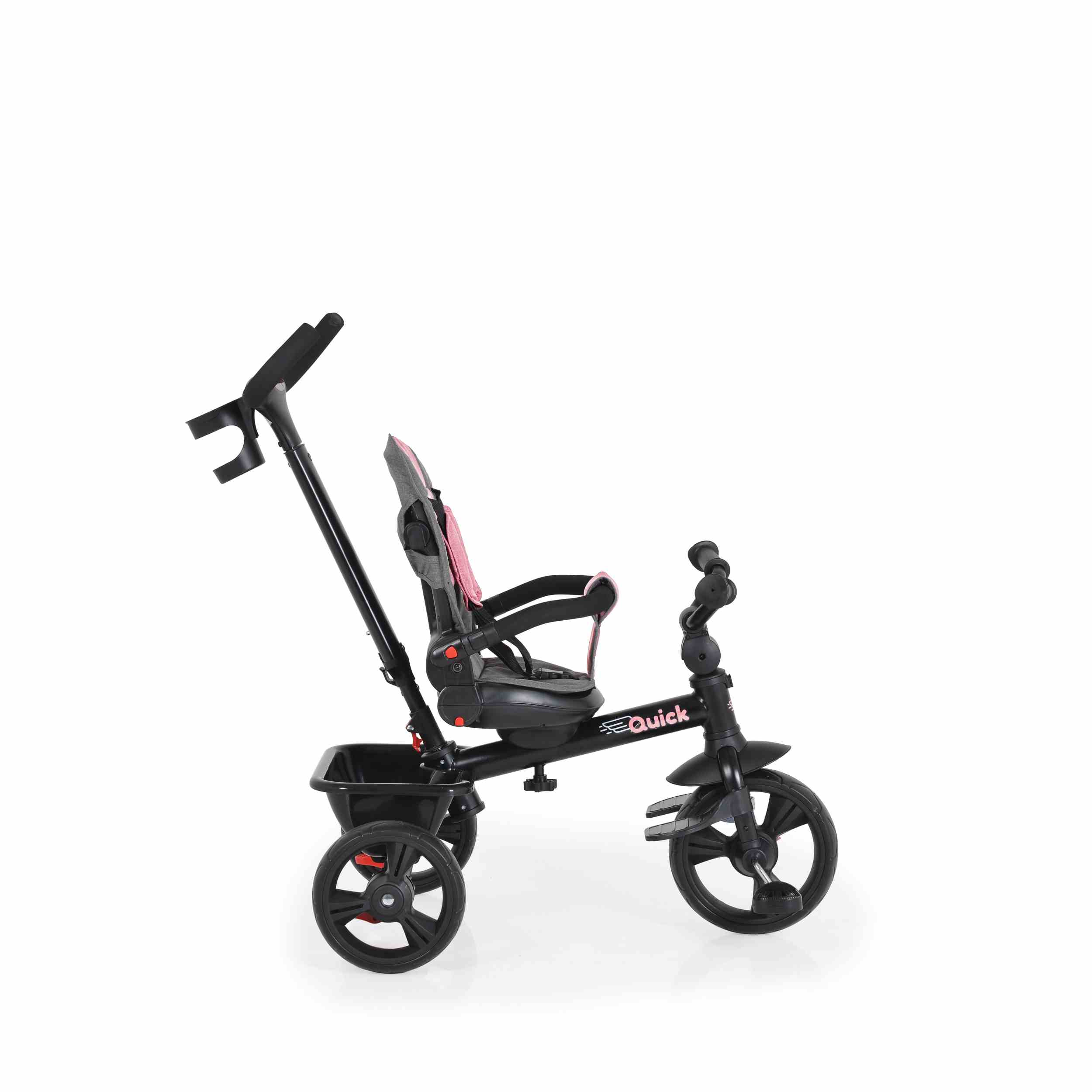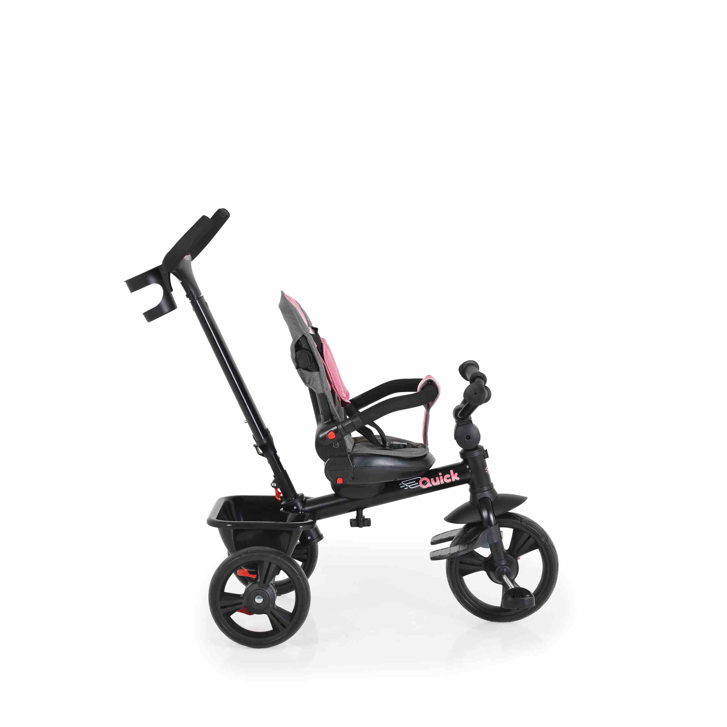 С тази триколка с регулируема облегалка Quick вашето дете ще се наслаждава на всяка разходка, а вие ще бъдете спокойни за неговата безопасност и комфорт. Изберете тази триколка и подарете на вашето дете незабравими моменти на радост и забавление!