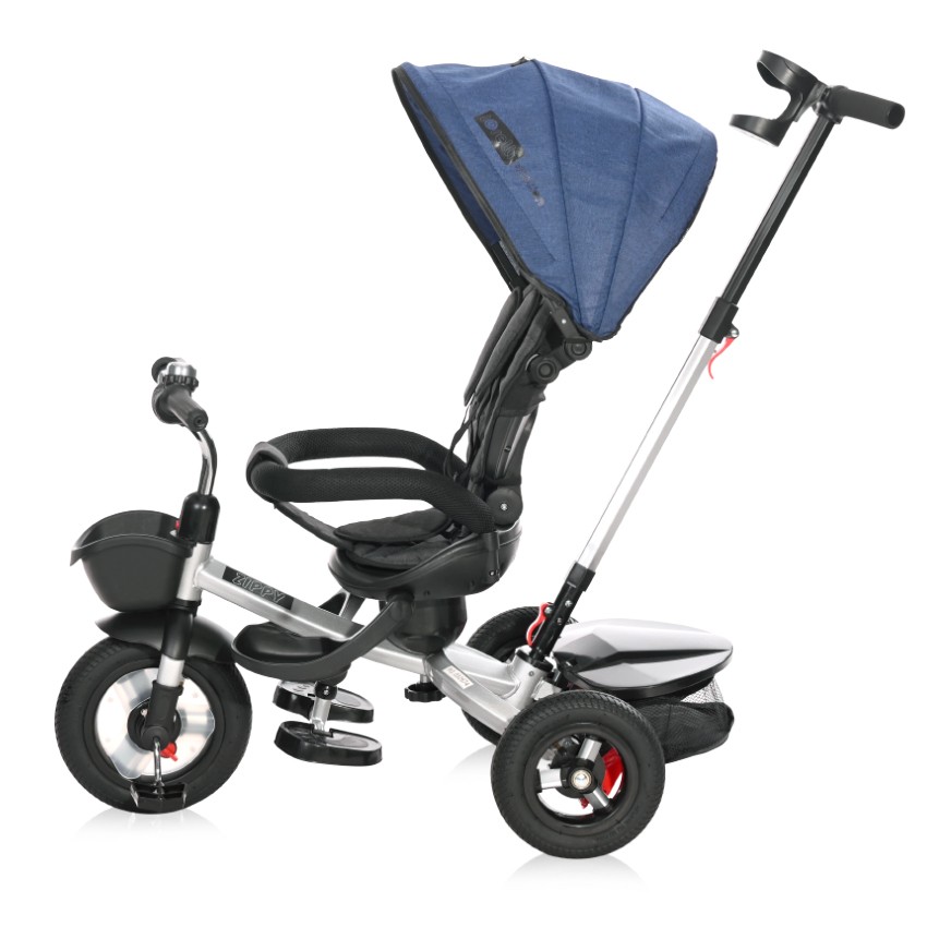 Детска Триколка Zippy синя с въздушни гуми е проектирана да предложи комфорт и забавление както за децата, така и за родителите по време на разходки.