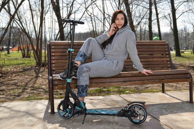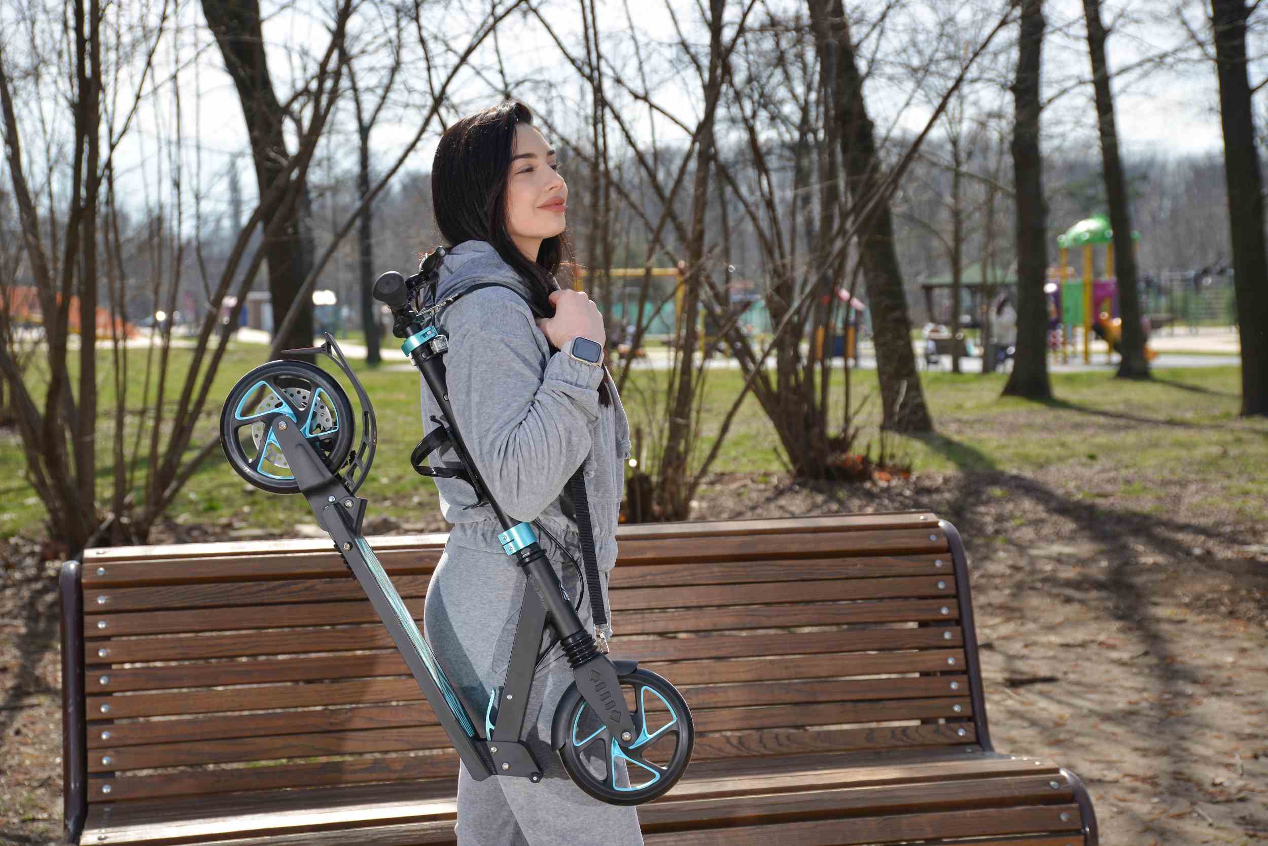 Сгъваема конструкция улеснява транспортирането и съхранението на тротинетката.