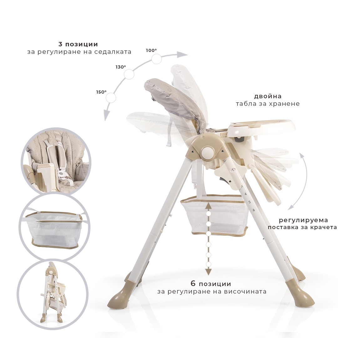 Продукт: Детски бежов стол за хранене Hunny