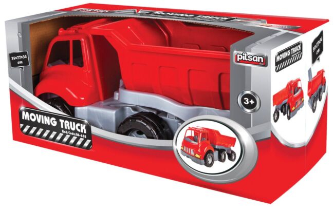 Детски Камион Moving Pilsan 06618 е детска играчка, произведена от марката Pilsan, която е известна със своите висококачествени детски продукти. Този камион е предназначен за деца на възраст 4 години и повече. Идеален за игра както на открито, така и в затворено пространство.