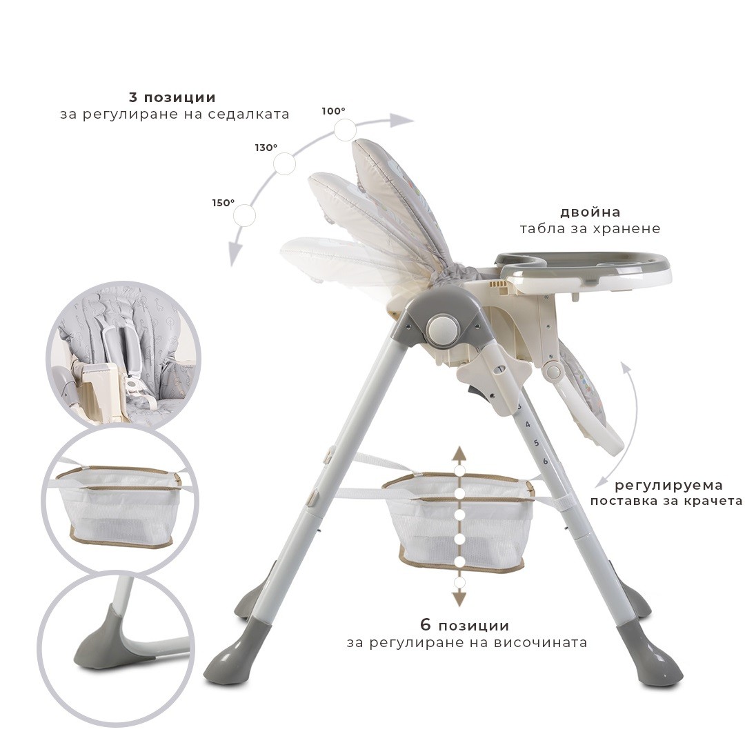 Детски сив стол за хранене Hunny е проектирано да осигури удобство и безопасност за децата по време на хранене. То е подходящо за деца на възраст над 6 месеца и с максимално тегло до 15 кг.