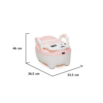 Дизайн: Гърнето е в ярък розов цвят и има ергономична форма, която осигурява комфорт на детето по време на използване. Дизайнът включва висока облегалка за допълнителна подкрепа и стабилност.
