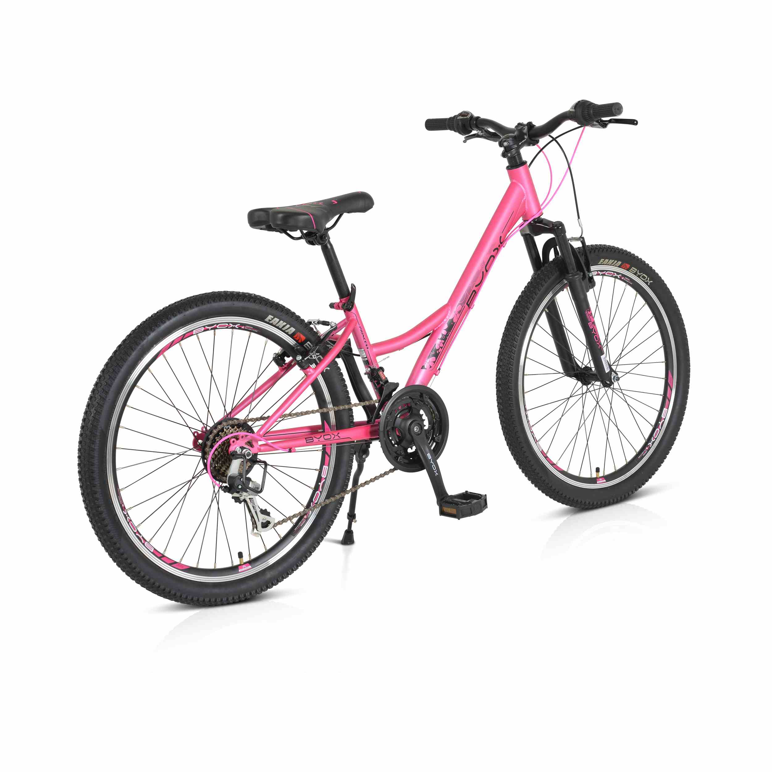 Детско колело PRINCESS розово 24“ със скорости със скорости със скорости е като взет от страниците на приказките, превърнат в реалност за малките принцеси, които обичат приключенията и свободата на открито. Със своята стоманена рамка и амортисьорна вилка, това детско колело е създадено да предложи комфорт и безопасност.