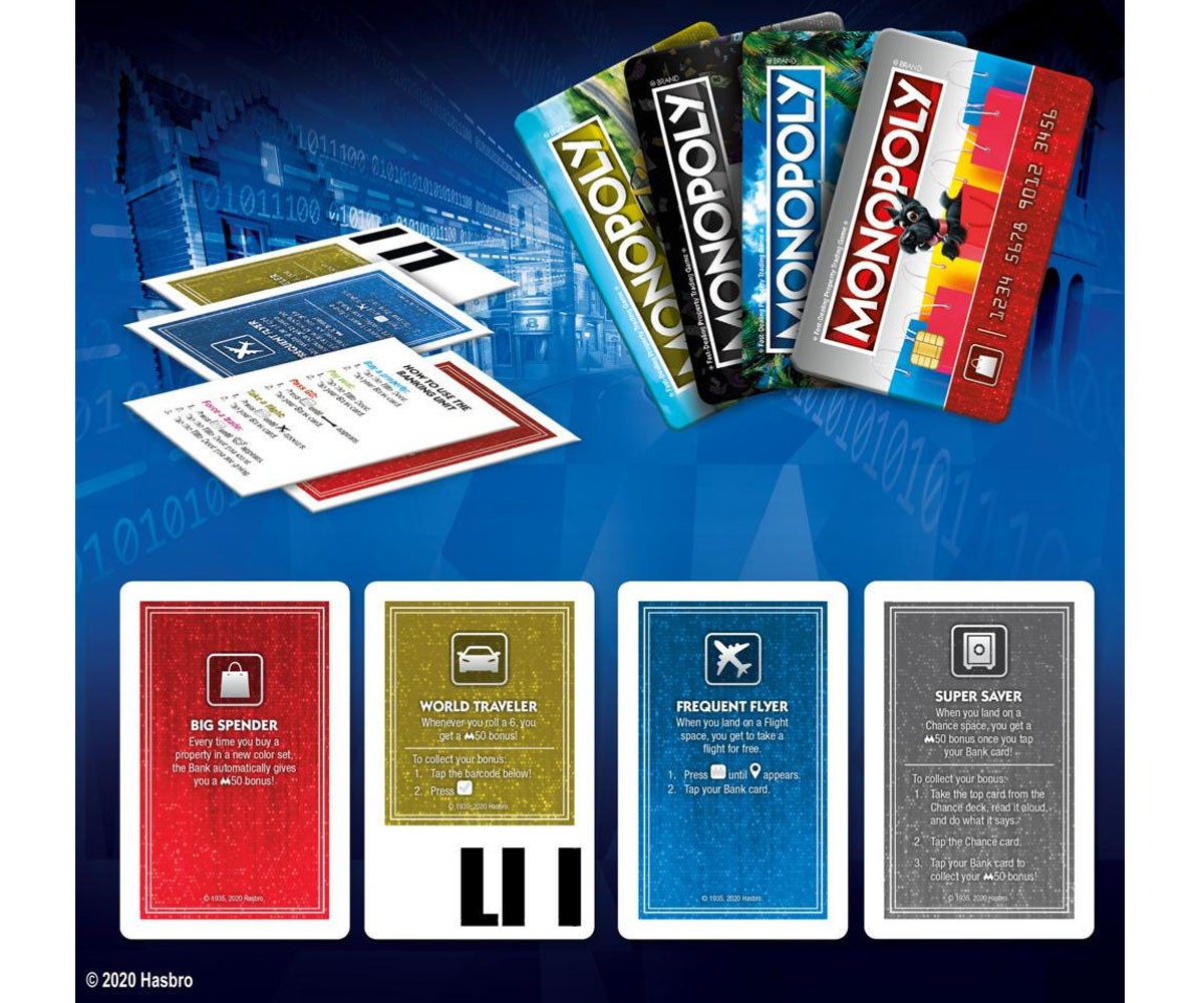 Банкови карти: Всяка банкова карта предлага различни награди за геймплей, като търкаляне на определен номер, кацане на определено място или закупуване на определен имот.