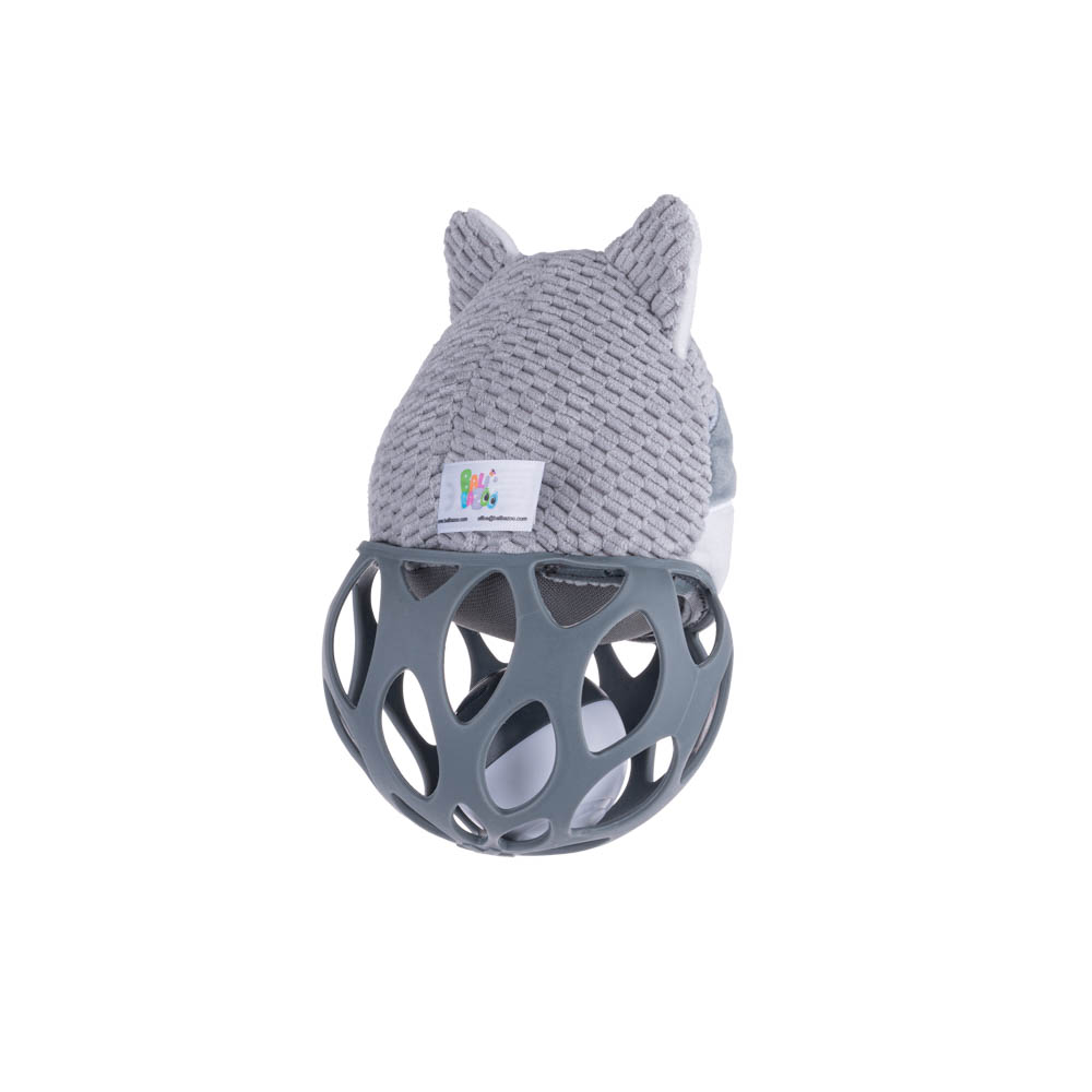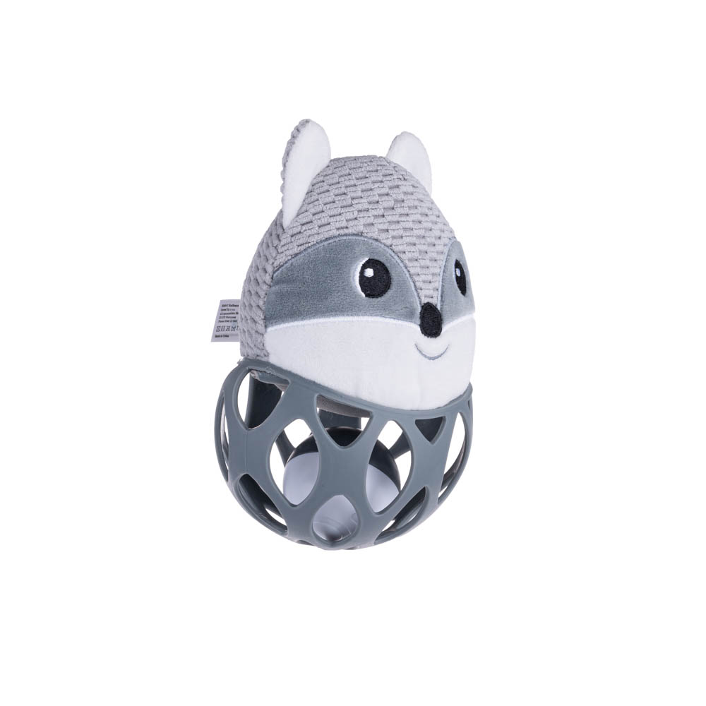 • Дизайн: Играчката е едновременно топка и дрънкалка, с главата на лисичето украсена с платнени етикети в различни цветове и шумолещи уши.