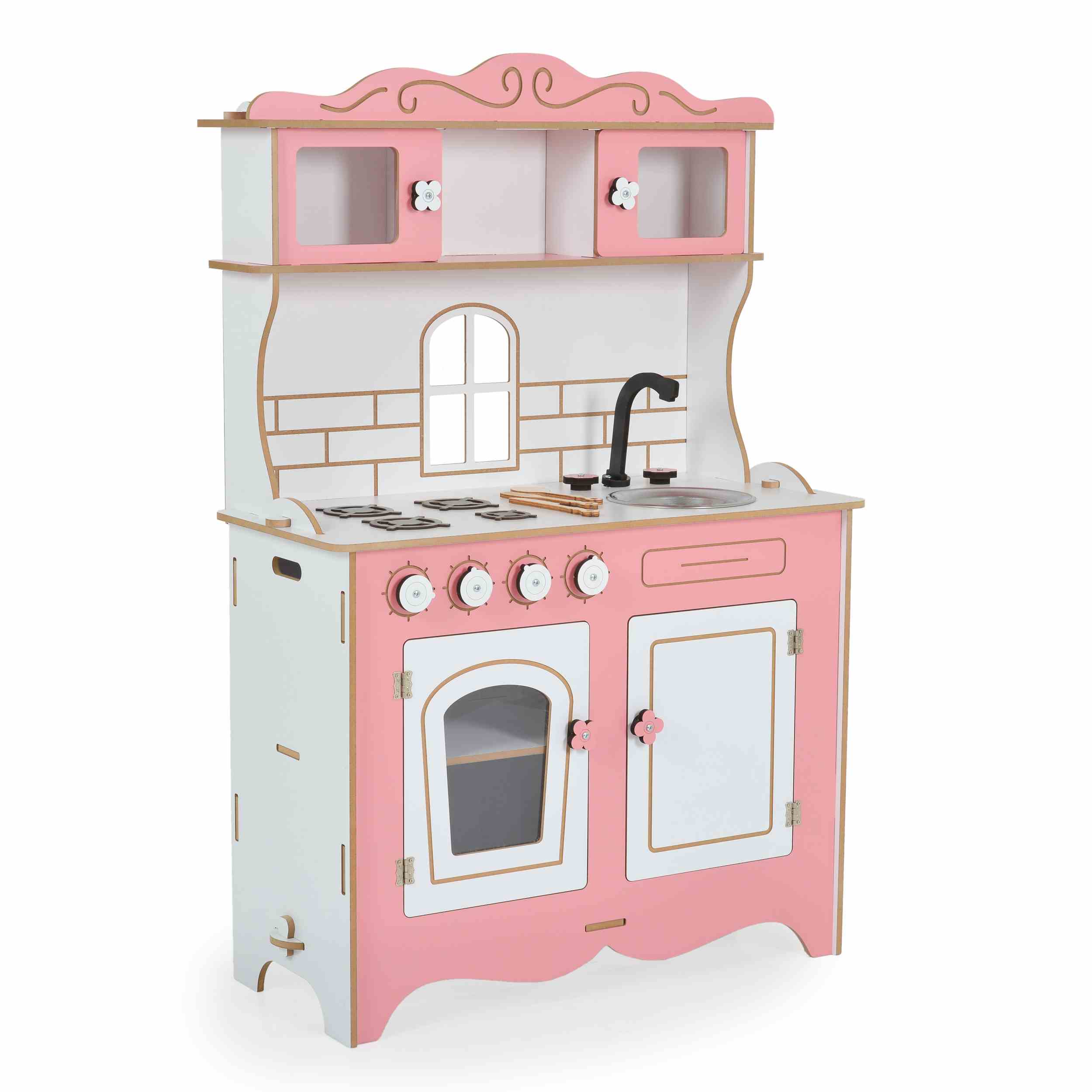 С Дървена детска кухня играчка Moni Toys – Rosey вашето дете ще се потопи в свят на забавление и фантазия, където всяка игра е ново приключение. Подарете му тази магическа детска кухня и наблюдавайте как въображението му разцъфтява!