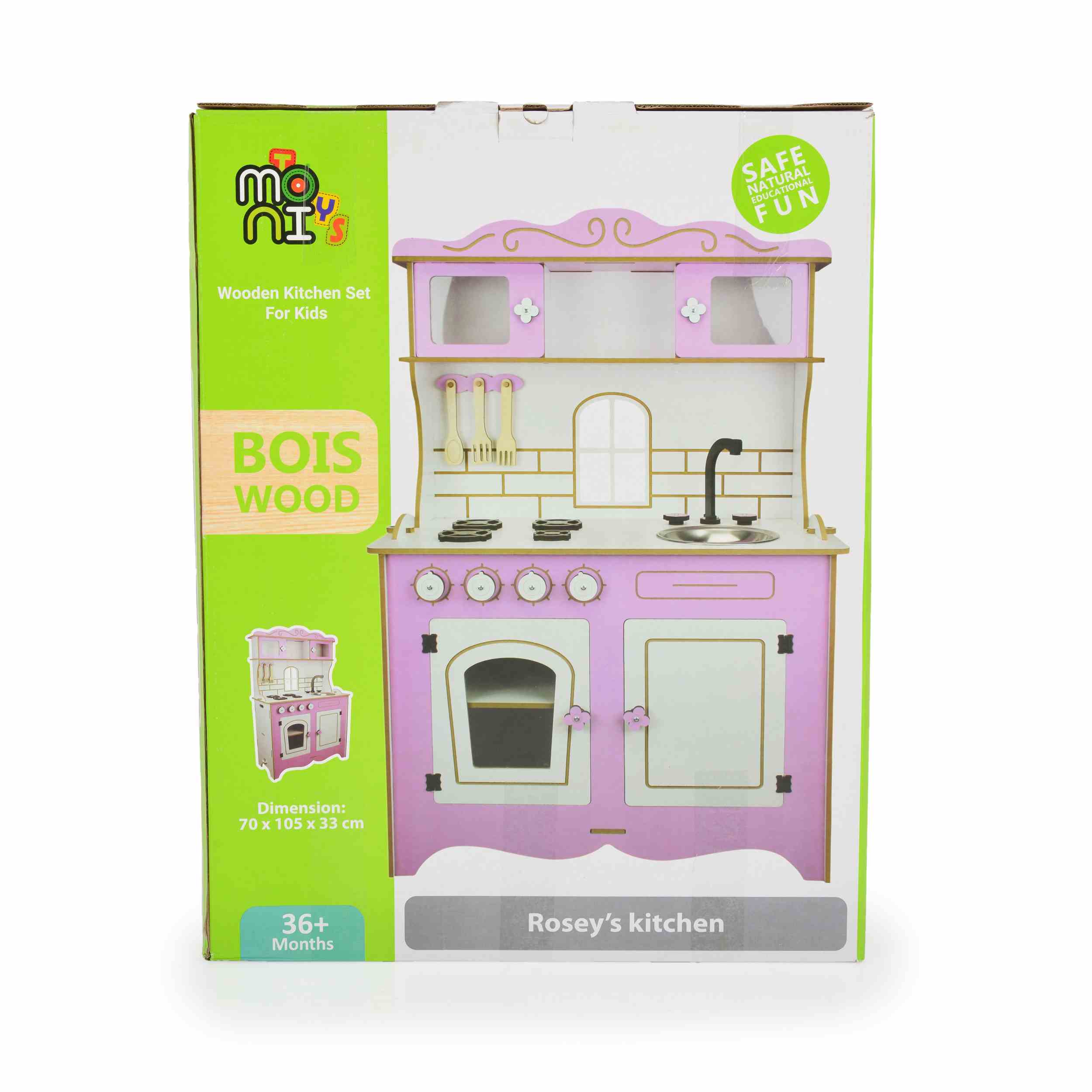 Представяме ви Дървената кухня Moni Toys – Rosey – идеалният подарък за малките подрастващи готвачи, които обичат да творят и да се забавляват в кухнята. Тази детска кухня играчка съчетава елегантен дизайн, функционалност и безопасност, за да осигури незабравими моменти на вашето дете.