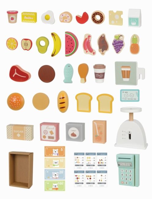 Допълнителни характеристики на Дървена играчка магазин с аксесоари: