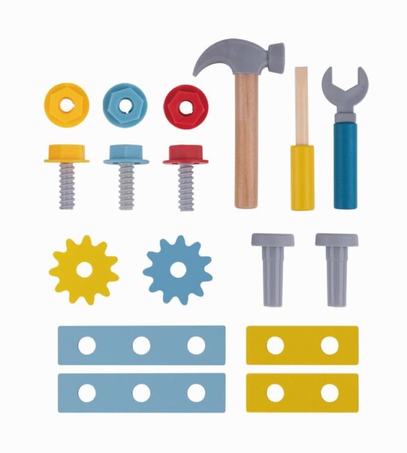 Комплектът дървена играчка съдържа разнообразие от дървени инструменти и елементи, които позволяват на децата да се запознаят с различни инструменти и техните функции. Цветните и реалистични инструменти стимулират въображението и творческото мислене на децата, като им позволяват да пресъздават различни сцени и истории.
