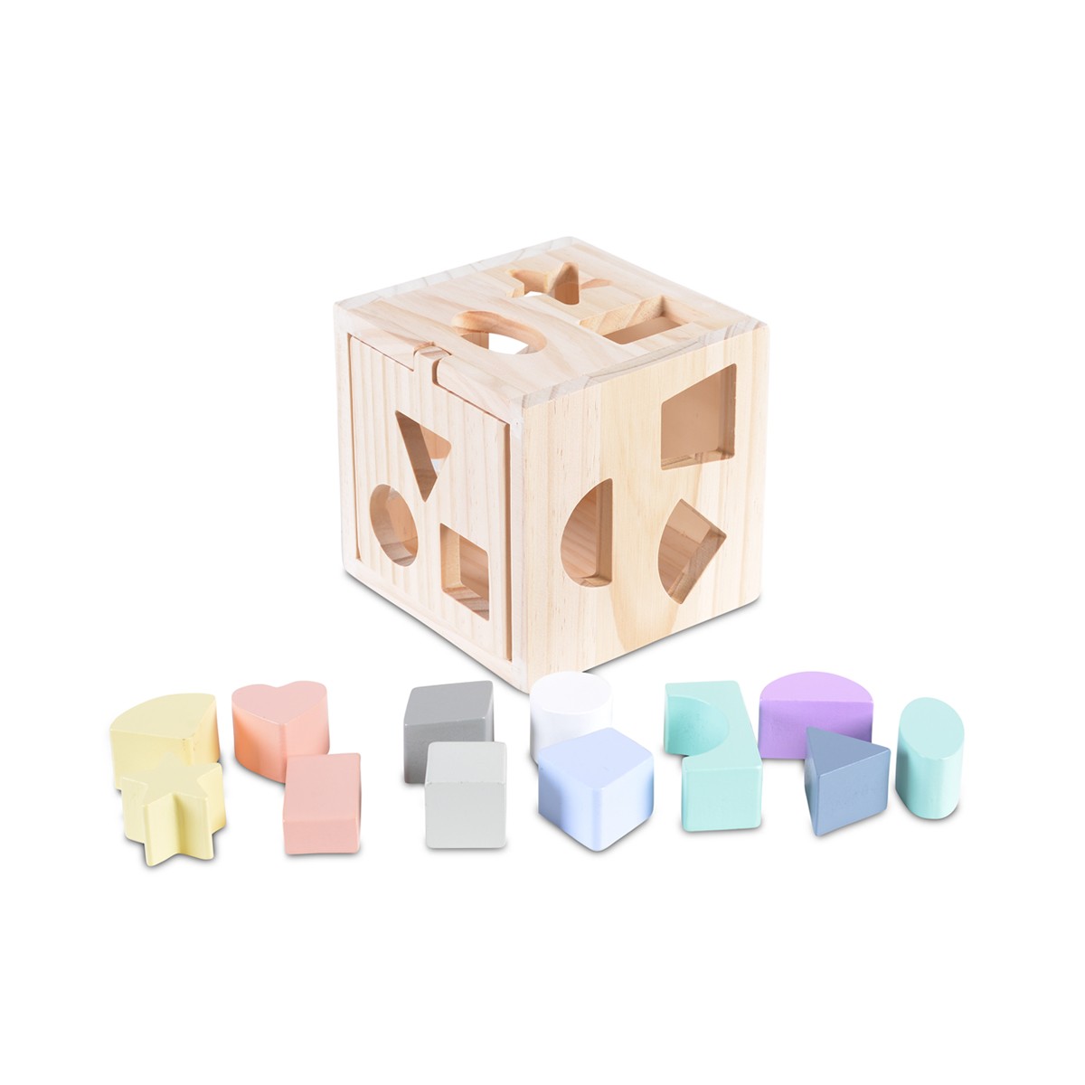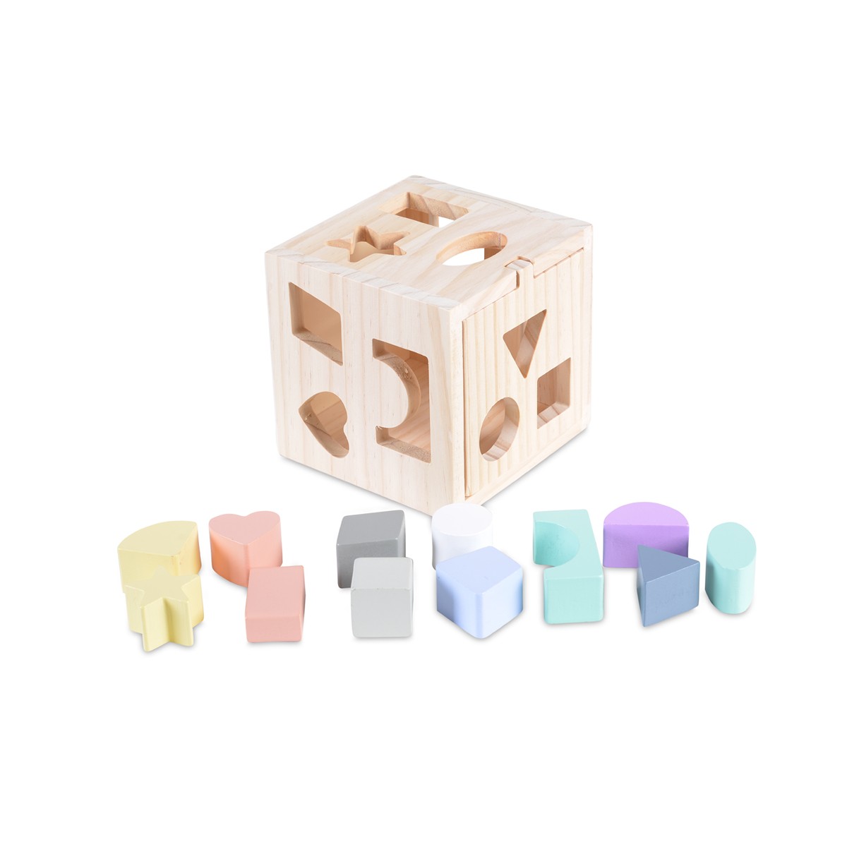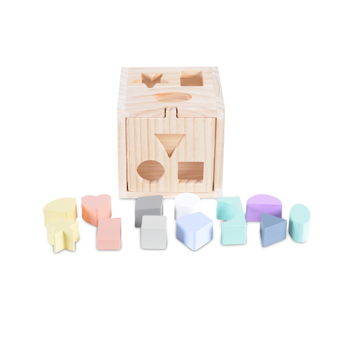 Тази играчка представлява дървен куб с отвори в различни форми, през които децата трябва да поставят съответстващите цветни блокчета. Кубът е оцветен в ярки и привлекателни цветове, които веднага привличат вниманието на малчуганите. Играта със сортер куба помага на децата да развиват своите двигателни умения, координация око-ръка и разпознаване на форми и цветове.