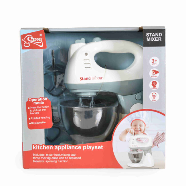 • Функции: Миксерът разполага с реалистични функции, включително въртящи се бъркалки и звукови ефекти, които имитират истински миксер.