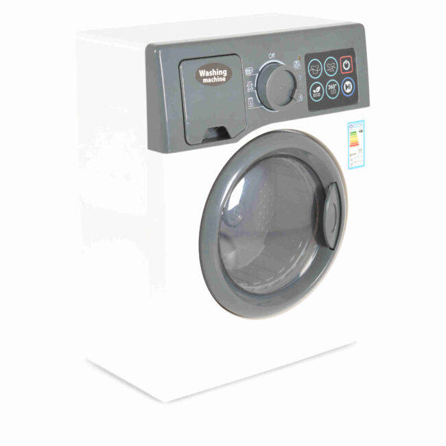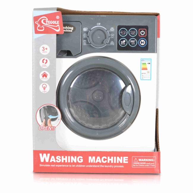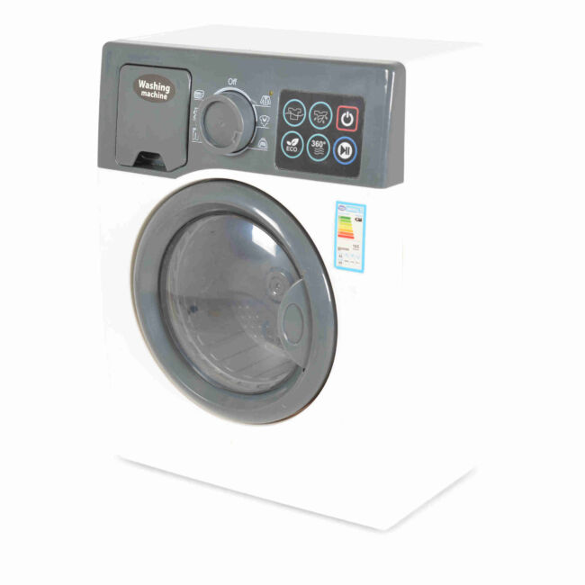 Електроуредът играчка пералня F2308 разполага с реалистичен дизайн и функции, които ще зарадват всяко дете. Тази играчка е оборудвана с 6 различни функционални бутона и копче, с което чрез завъртане се избира вида текстил. Вратичката се отваря и затваря, което прави играта още по-забавна и интерактивна.