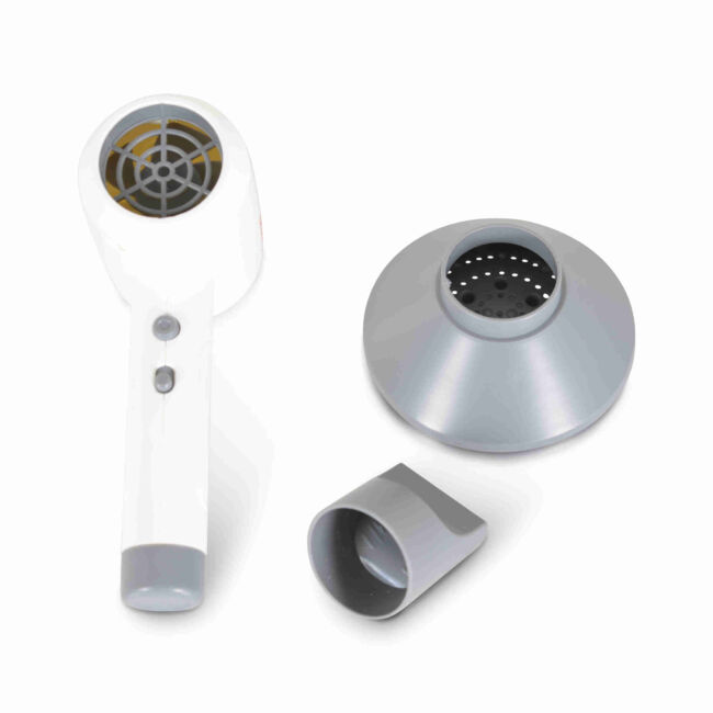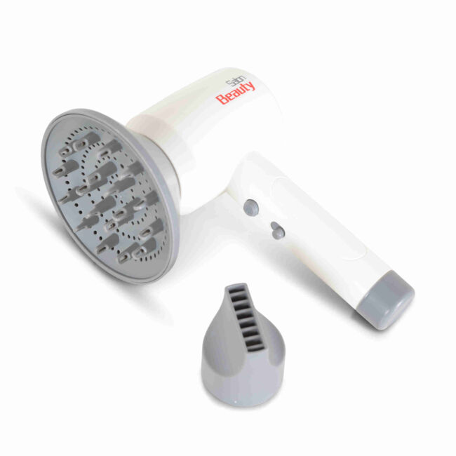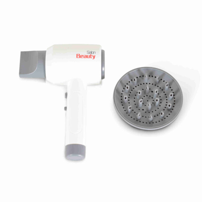 - Включени аксесоари: Електроуред Играчка Сешоар F2313 идва с два различни накрайника, които позволяват на децата да експериментират с различни стилове на „сушене“ на косата.