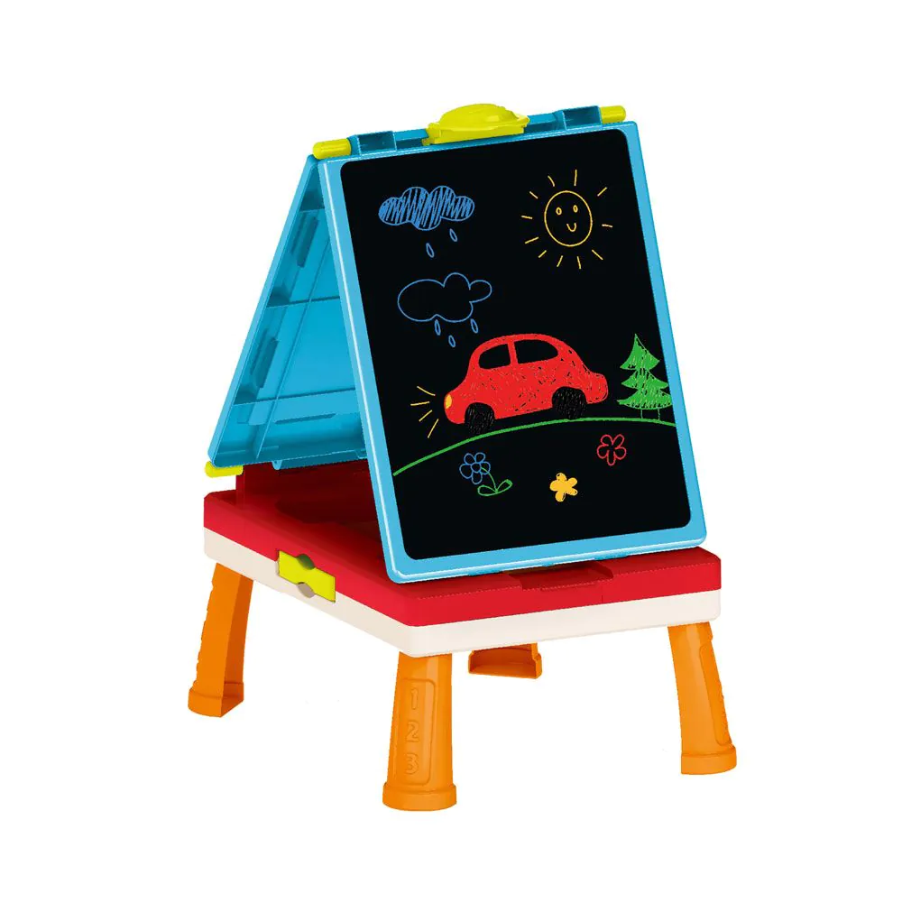 Игрална маса с дъска за рисуване двустранна Artist 31 части: Тази игрална маса има две страни. От едната страна е бяла дъска, предназначена за рисуване с флумастери, а от другата страна е черна дъска, която може да се използва с тебешири.