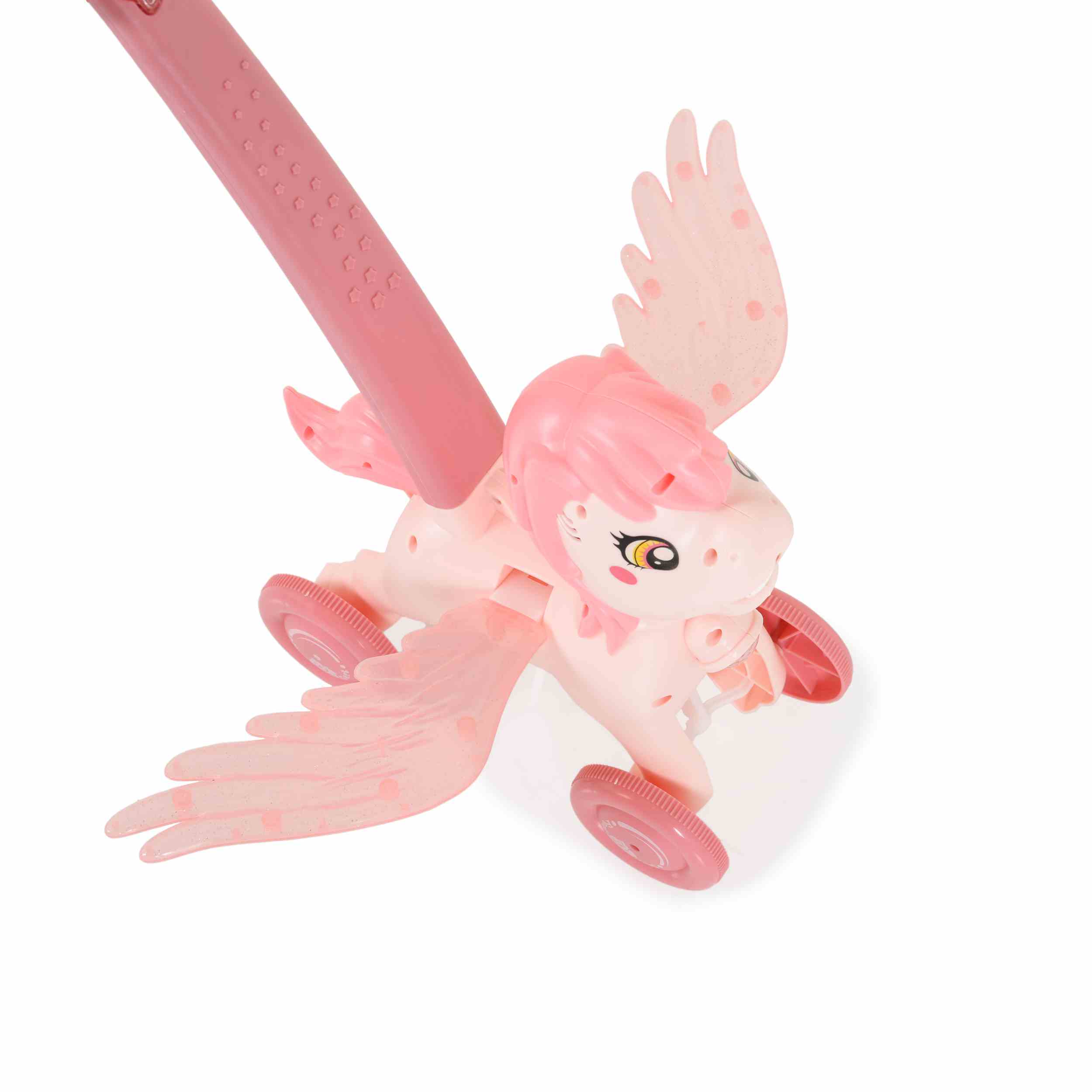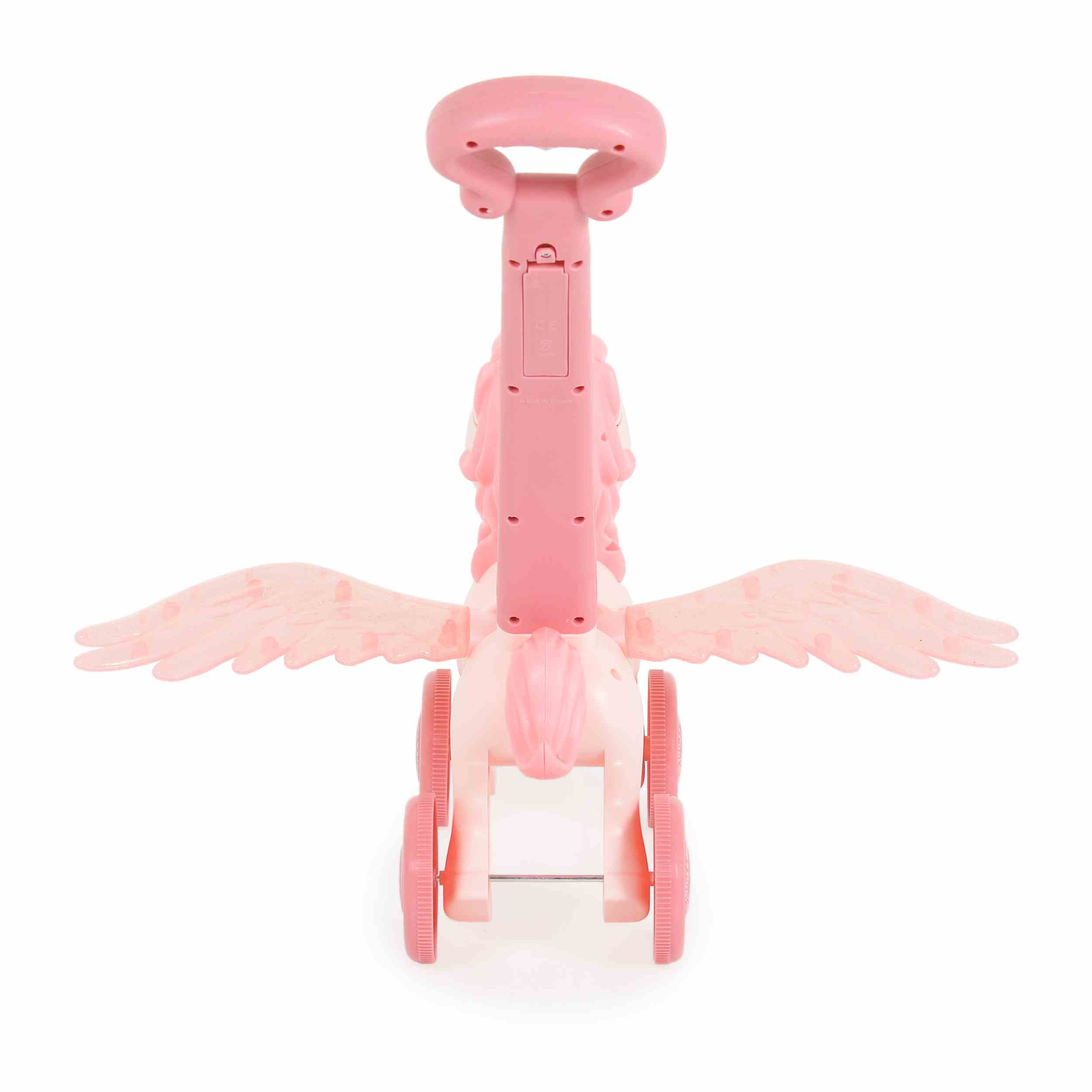 Сапунени балони: Играчката създава сапунени балони, докато детето бута пони-то, което прави играта още по-забавна и вълнуваща.