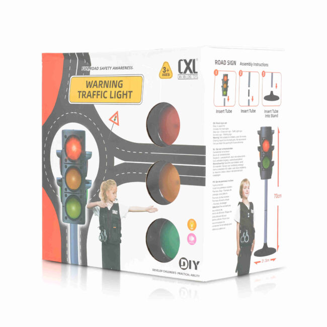 Реалистични аксесоари: Комплектът включва светофар със светлини и полицейски аксесоари, които осигуряват реалистично изживяване и стимулират въображението на децата.
