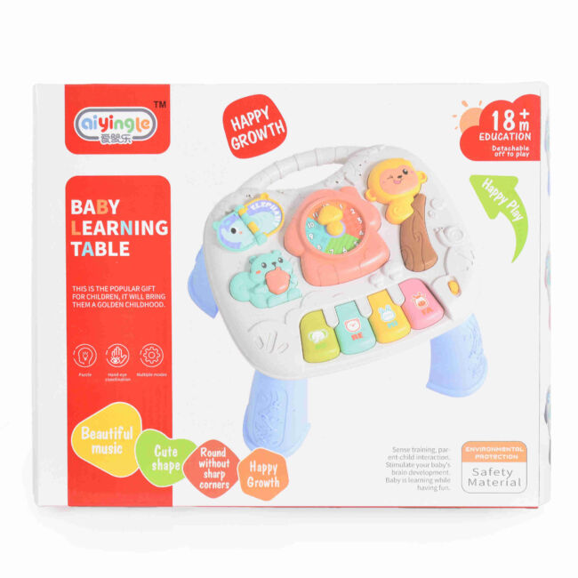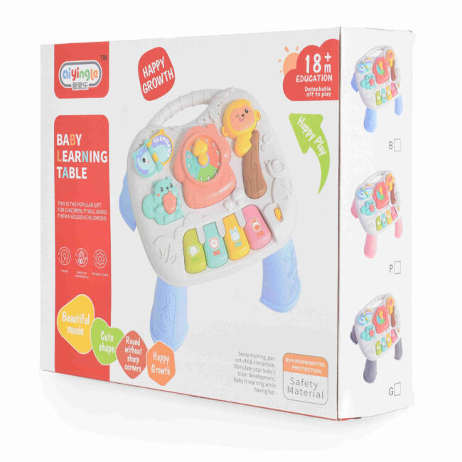 Но това не е всичко! Тази Интерактивна масичка включва разнообразие от активности, като игри с форми, цветове и звуци. Те стимулират когнитивното развитие и моториката на детето. С натискането на бутоните и въртенето на ръчките, вашето дете ще открива нови и вълнуващи начини да се забавлява и учи.